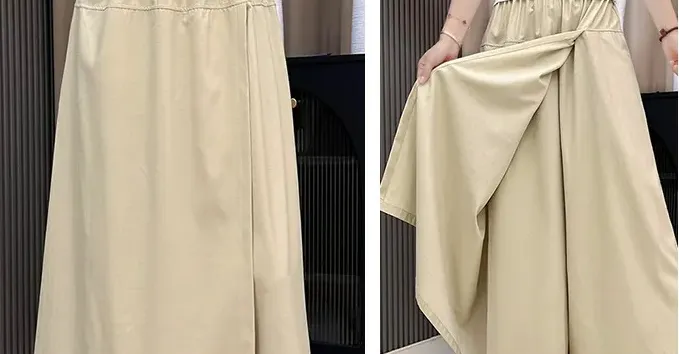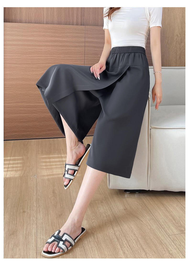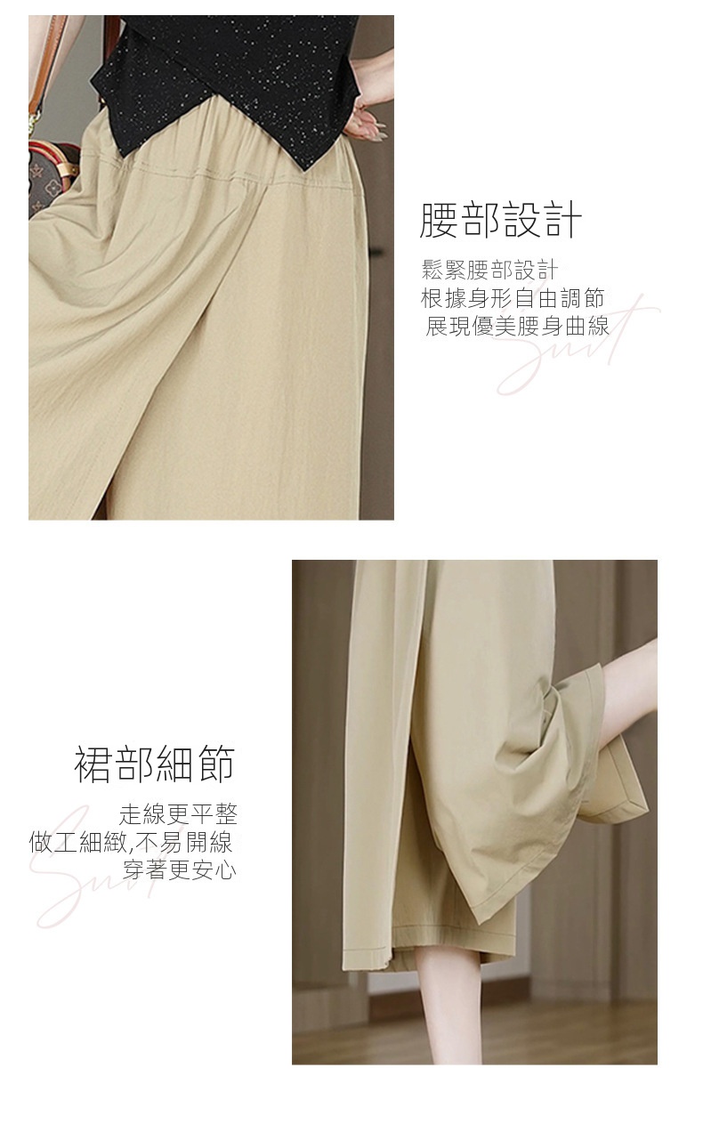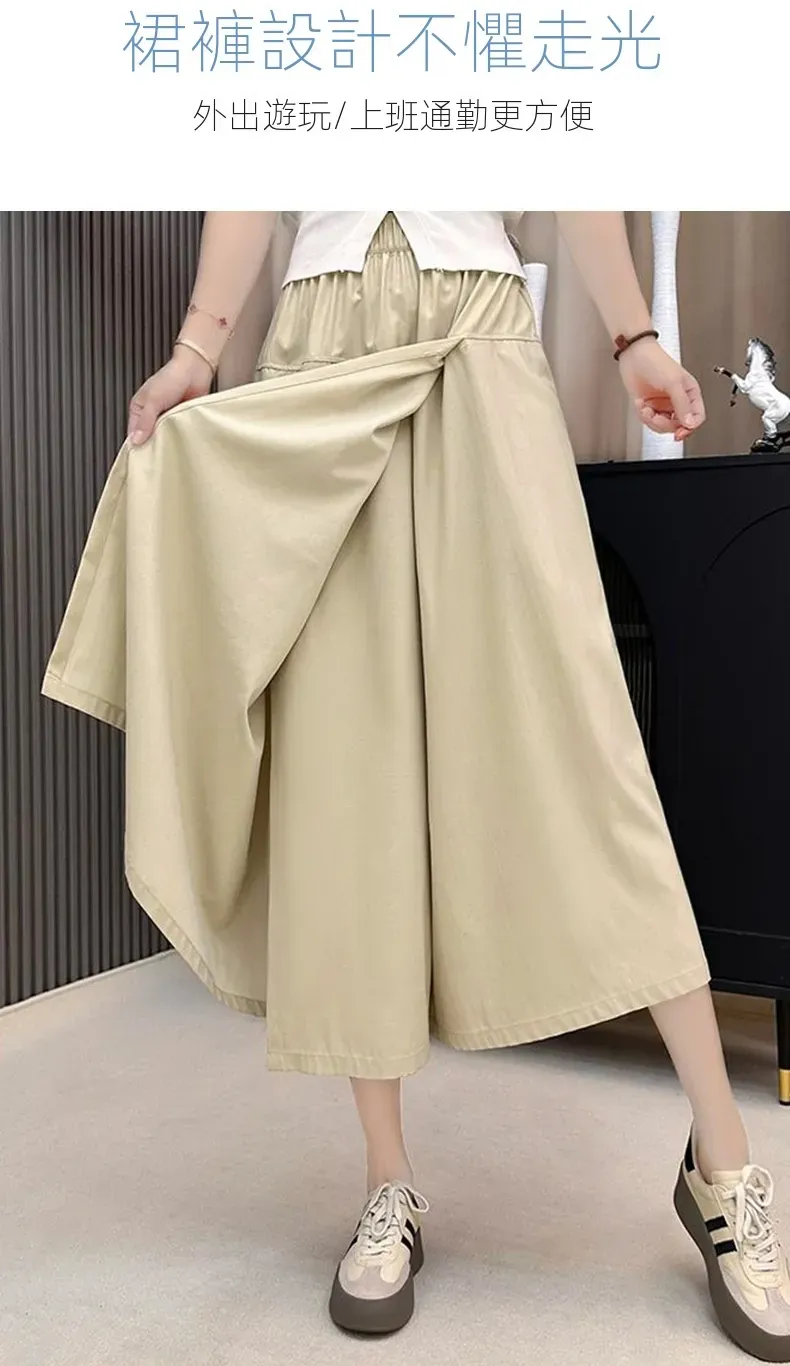 闊腿顯瘦鬆緊腰休閒工裝防曬開叉裙褲