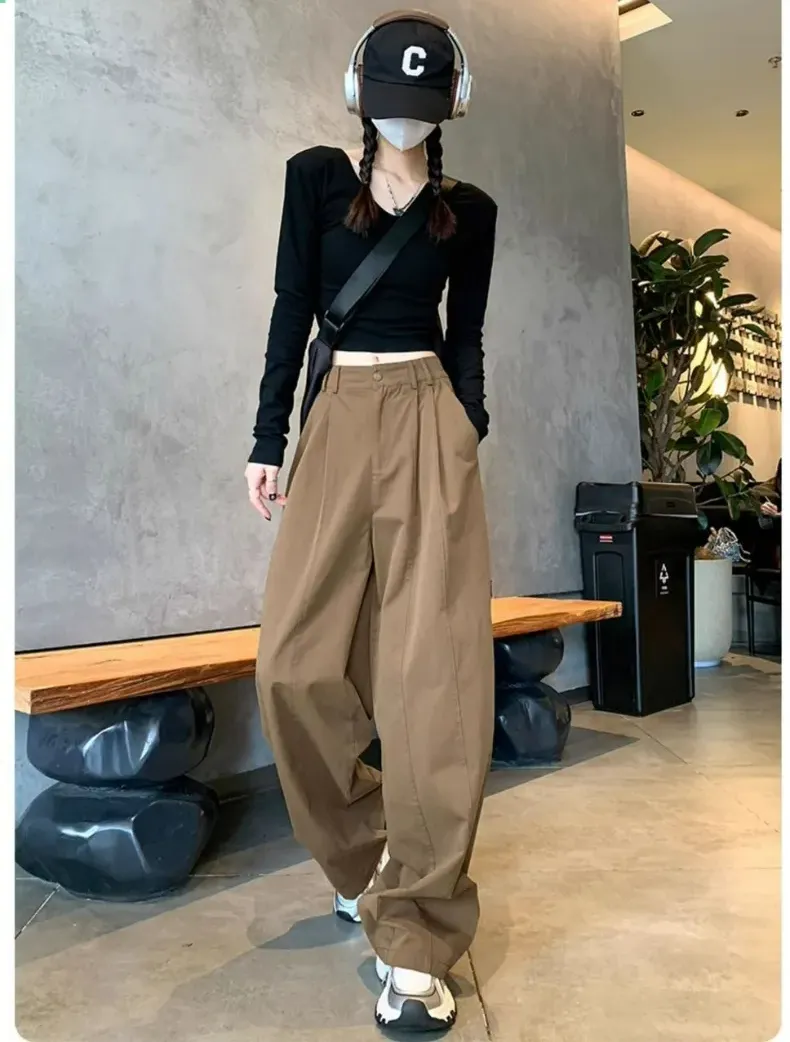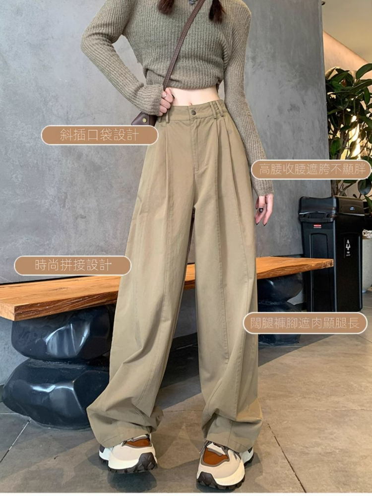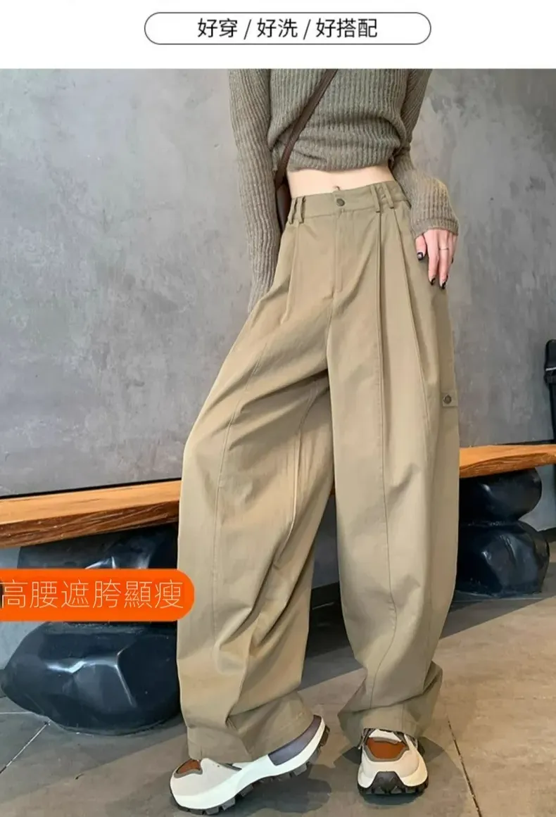 美式高腰顯瘦寬鬆休閒運動工裝闊腿褲