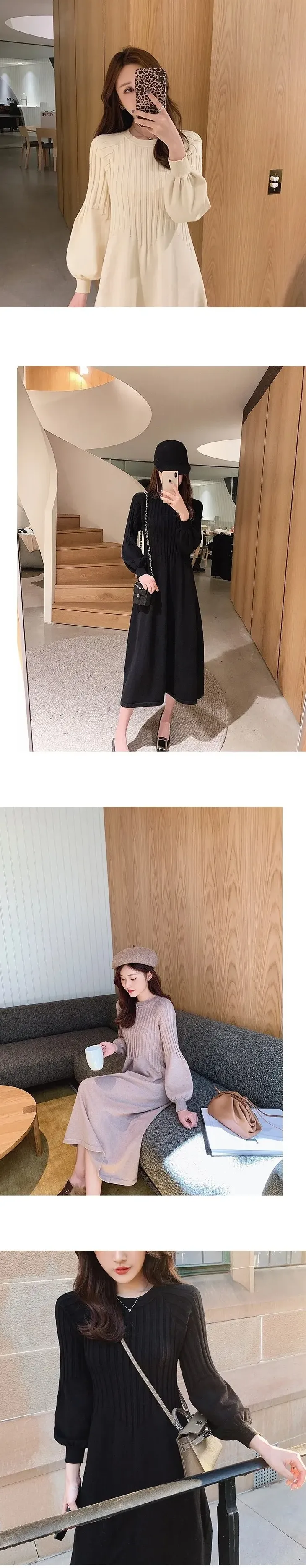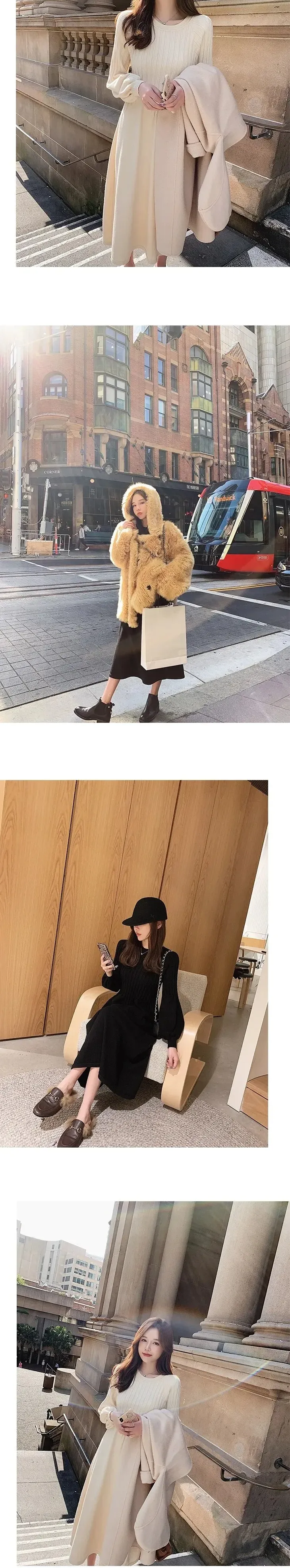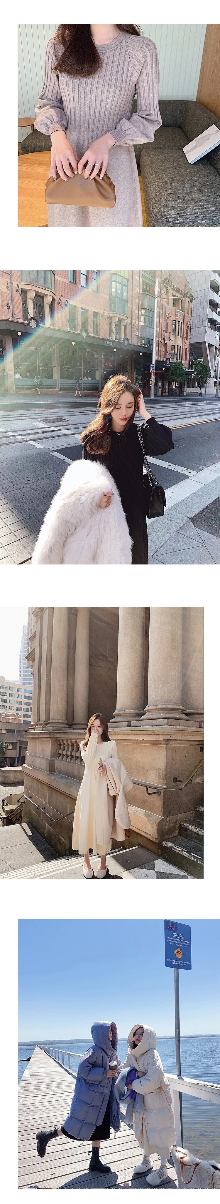 針織內搭長款過膝收腰顯瘦氣質連身裙