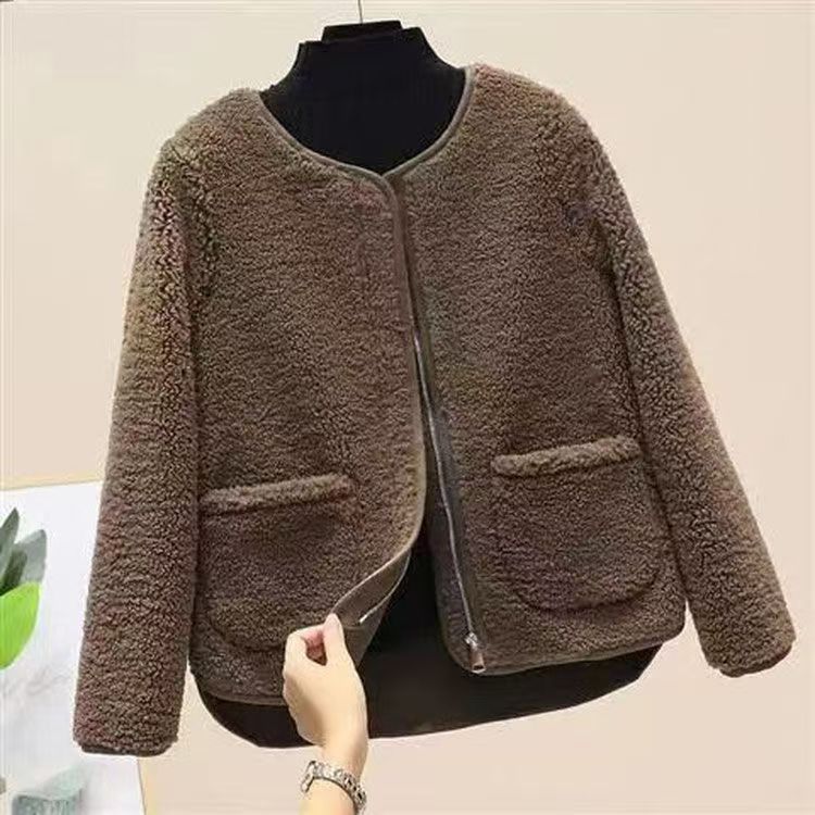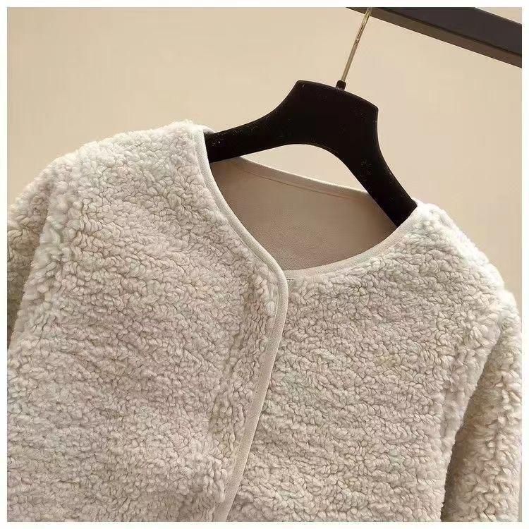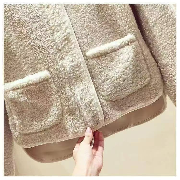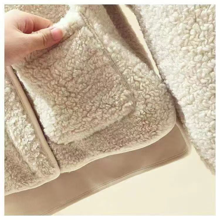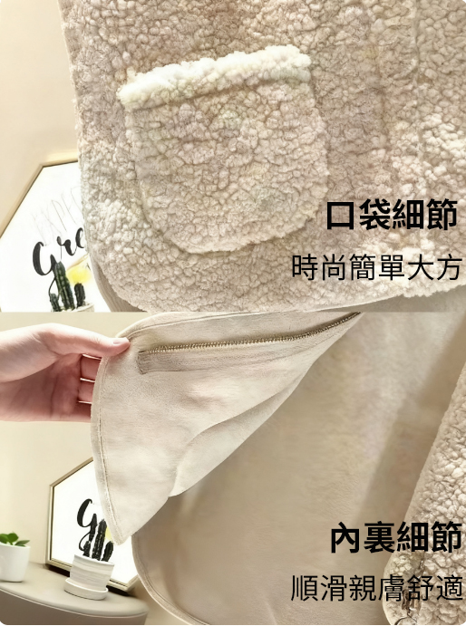 寬鬆慵懶連帽刷毛仿皮草加厚羊羔毛絨外套