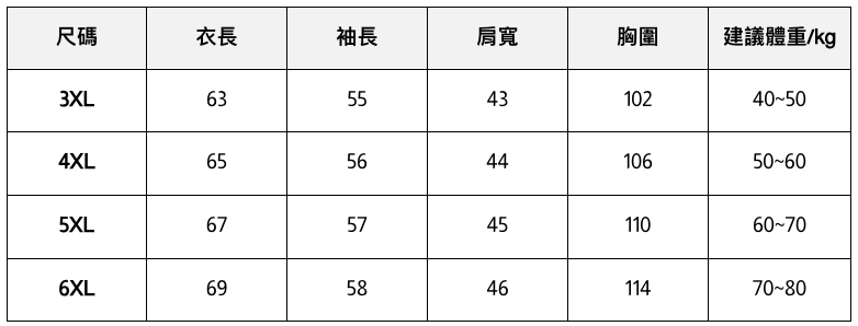 此處給出的參考尺寸表只是一個標準指南