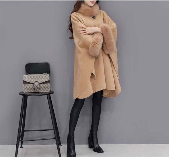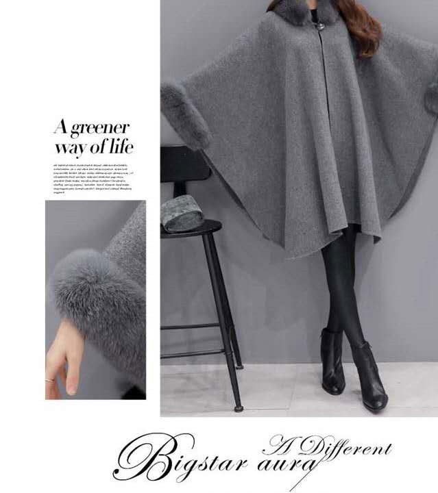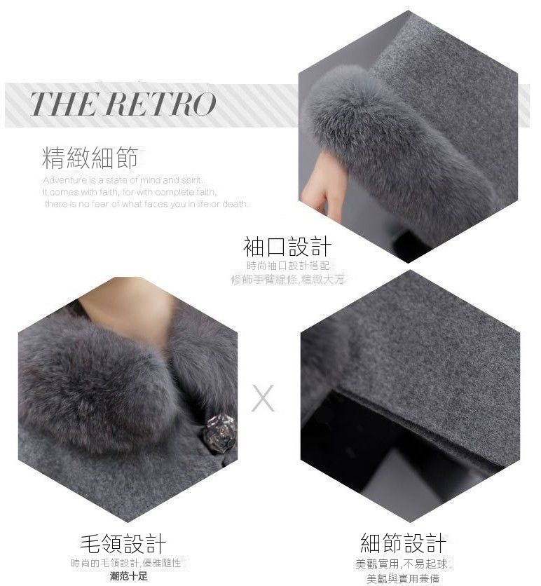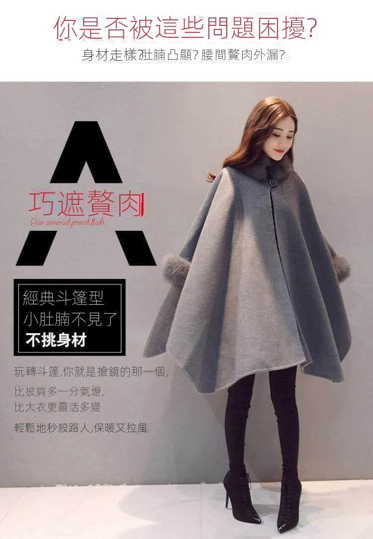 大毛領中長版呢子大衣赫本風遮肉斗篷外套