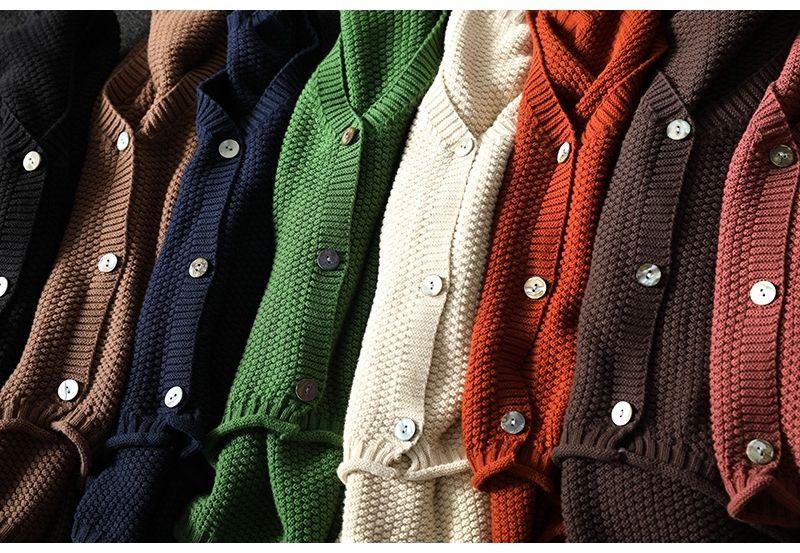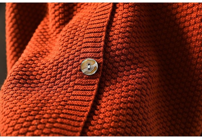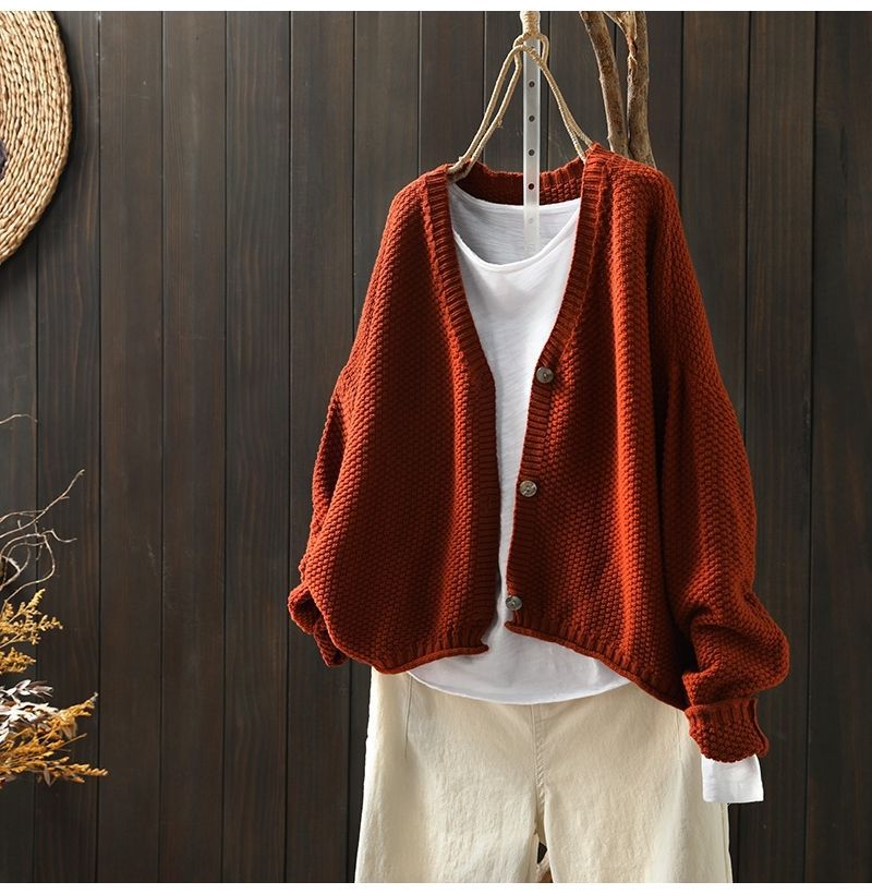 百搭文藝素色圓領單排扣寬鬆針織開衫