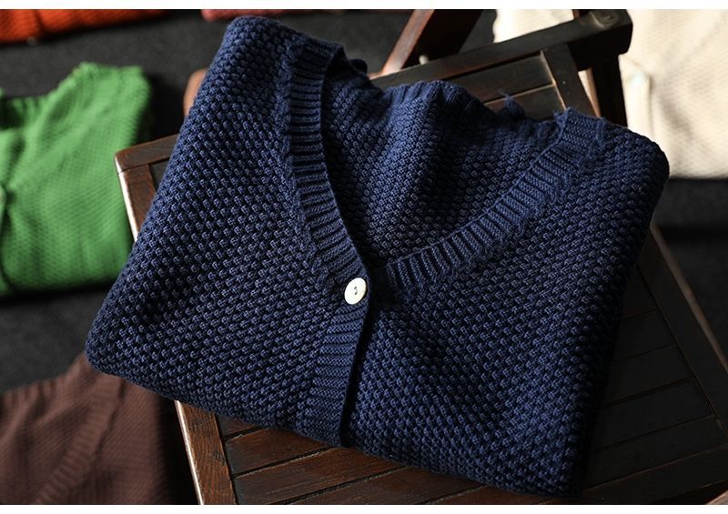 復古V領寬松文藝休閑百搭外套針織開衫