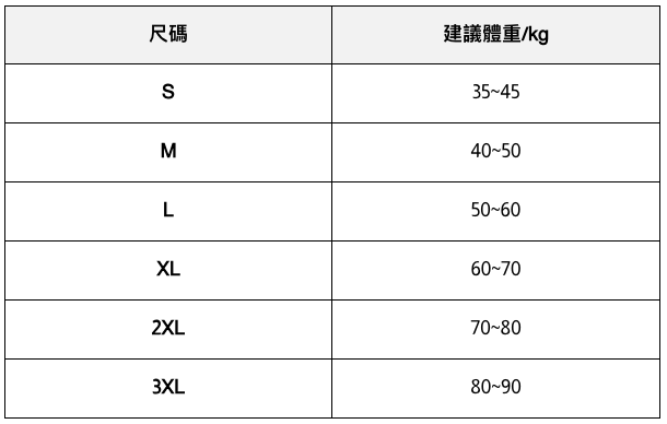 此處給出的參考尺寸表只是一個標準指南