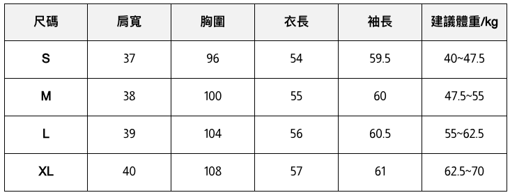 此處給出的參考尺寸表只是一個標準指南