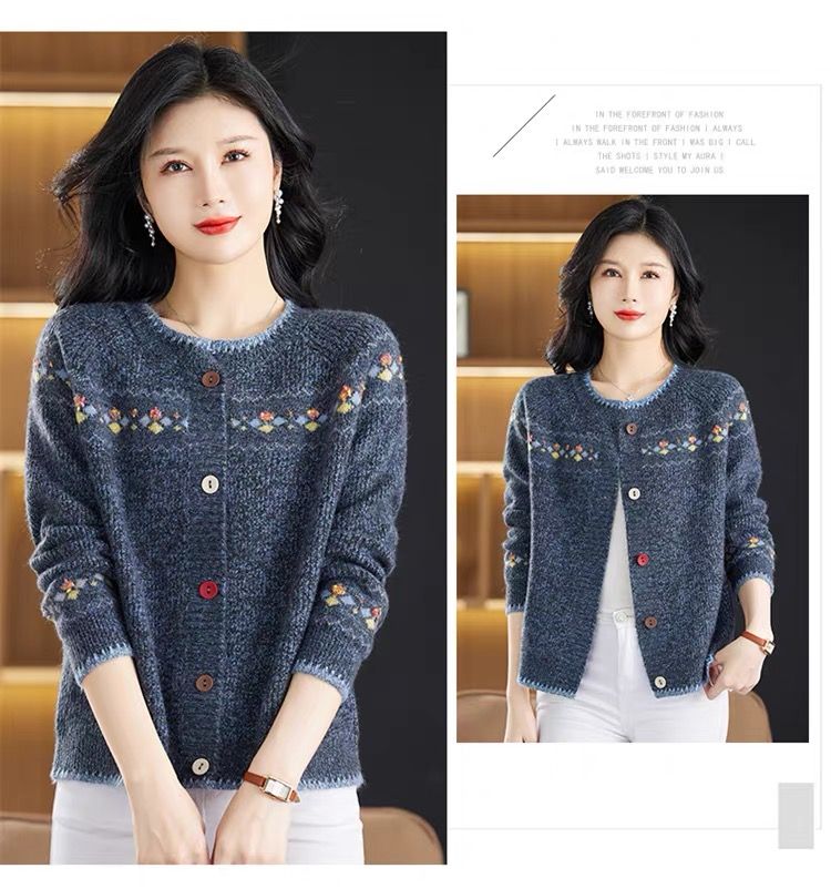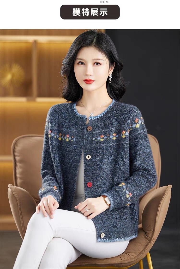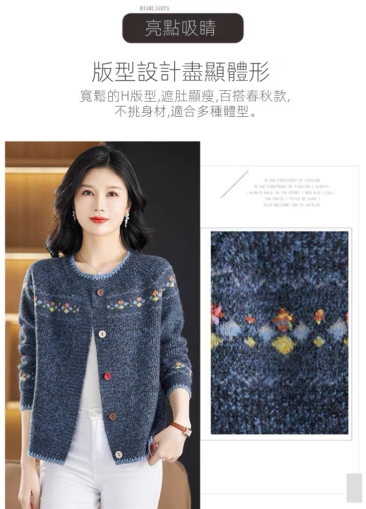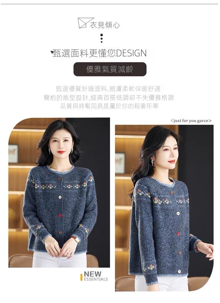 氣質休閒減齡復古寬鬆花紗針織開衫