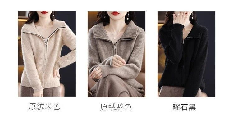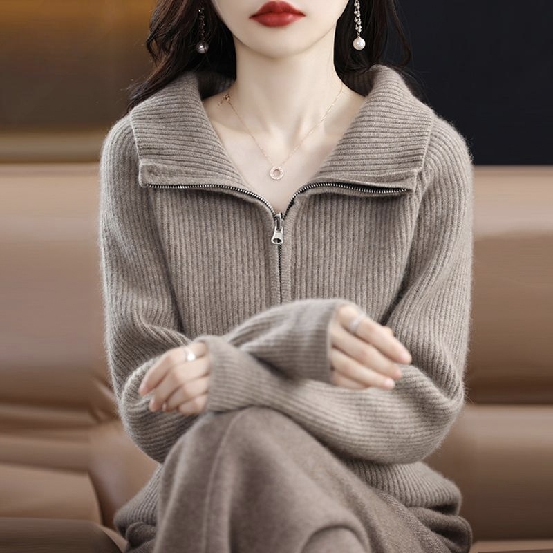 拉鍊羊毛外套粗針加厚寬鬆針織開衫