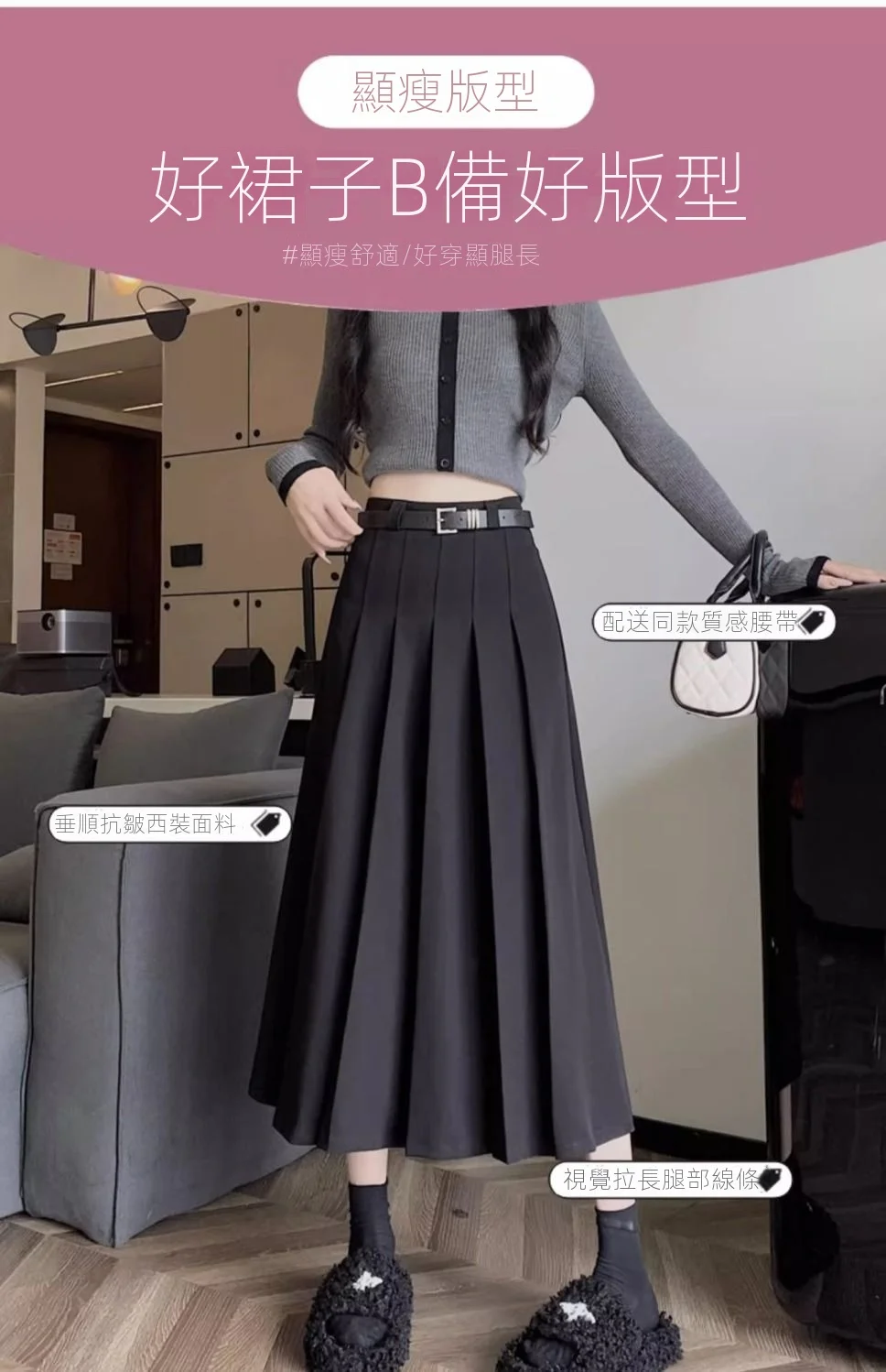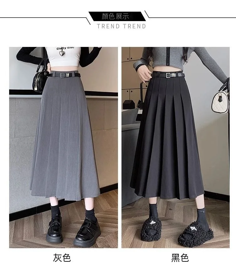 學院風高腰顯瘦A字西裝百褶中長款半身裙