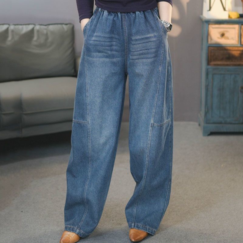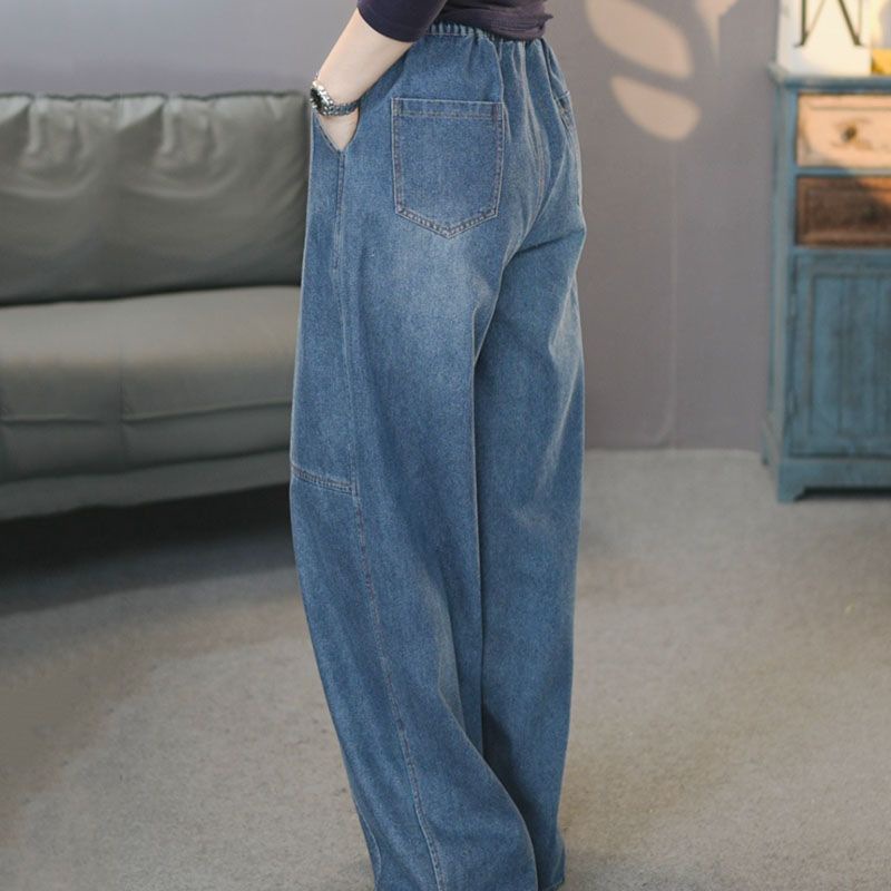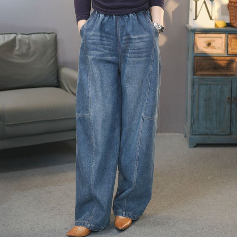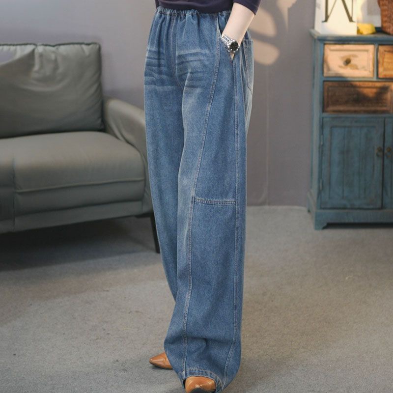 美式彎刀闊腿高腰寬鬆顯瘦大碼拖地牛仔褲