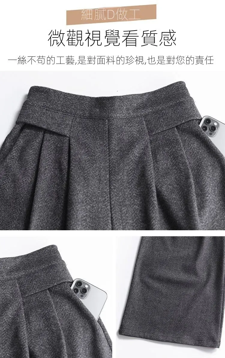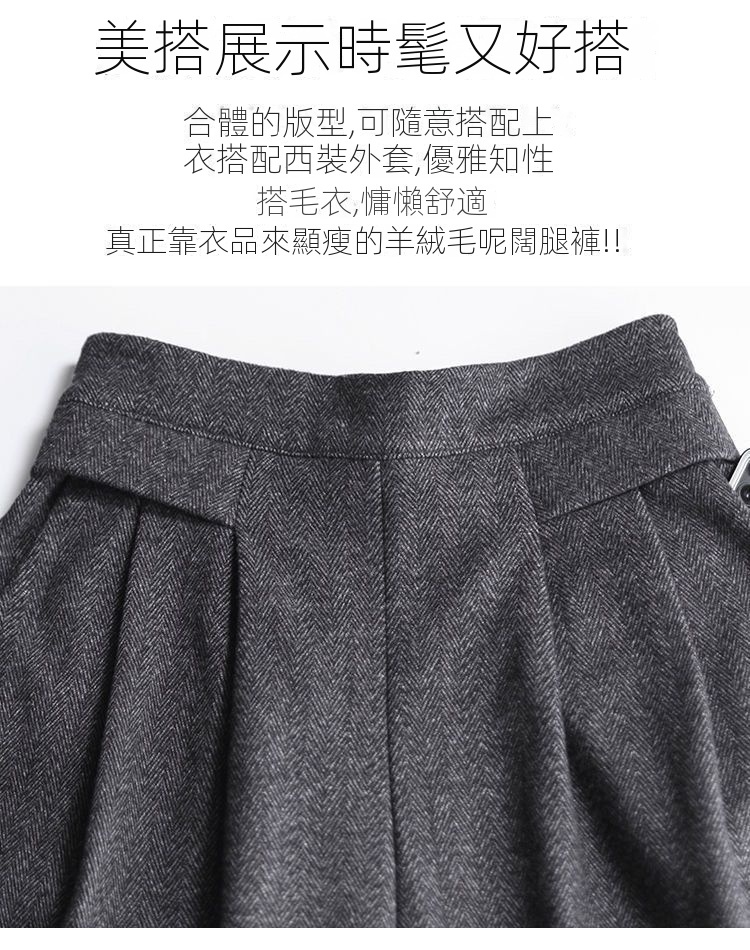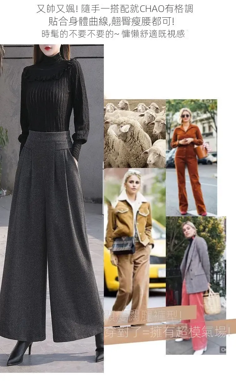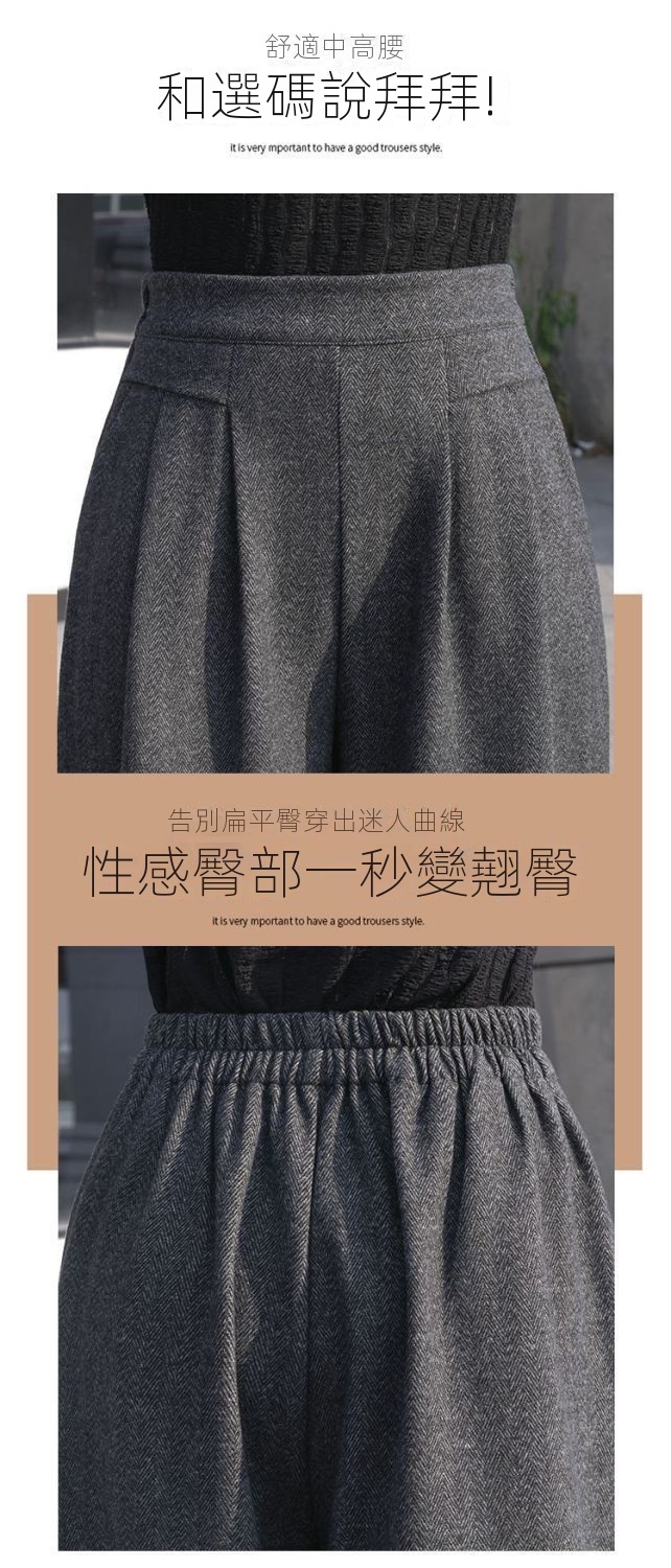 羊絨毛呢高腰寬鬆顯瘦垂感直筒闊腿褲