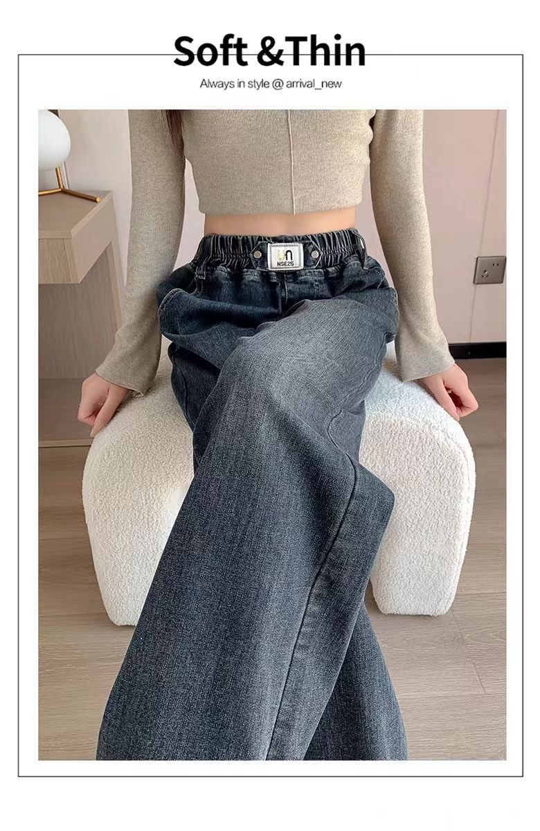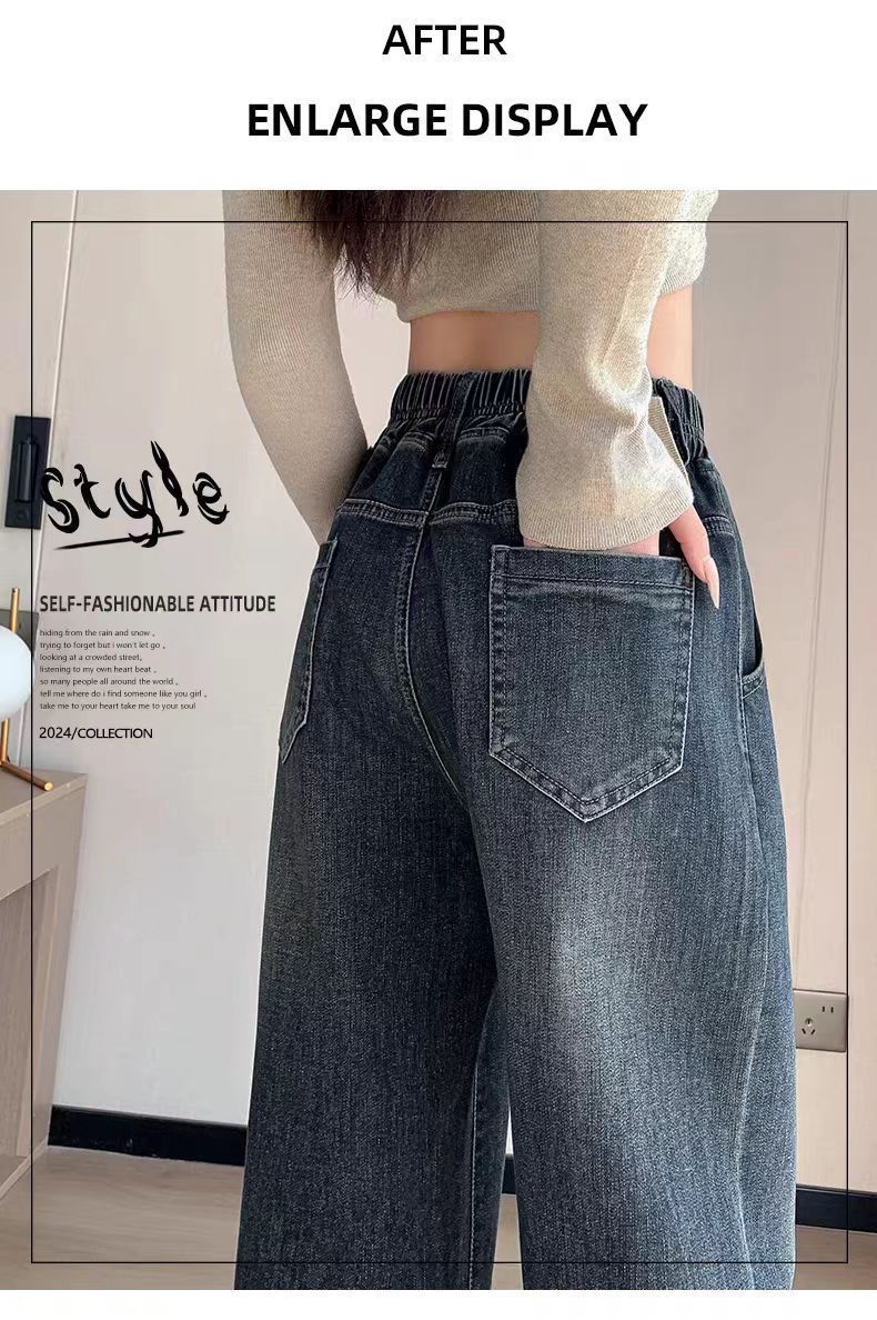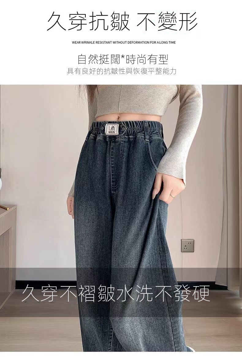 刷毛加厚彈力寬鬆顯瘦鬆緊高腰直筒牛仔褲
