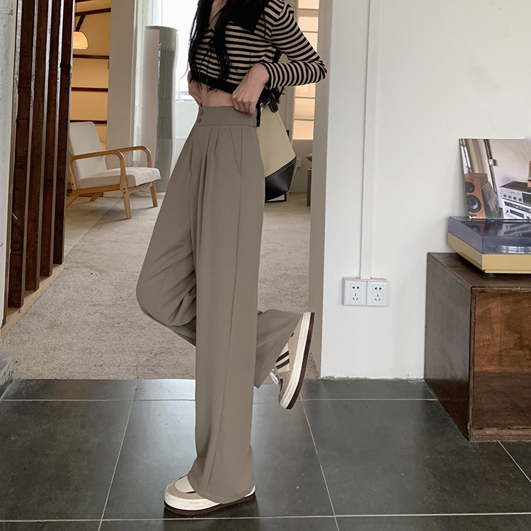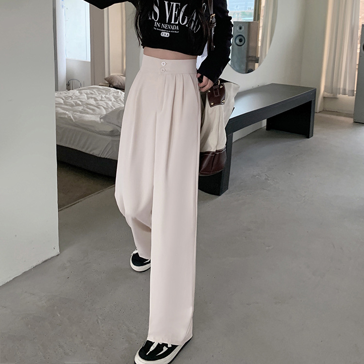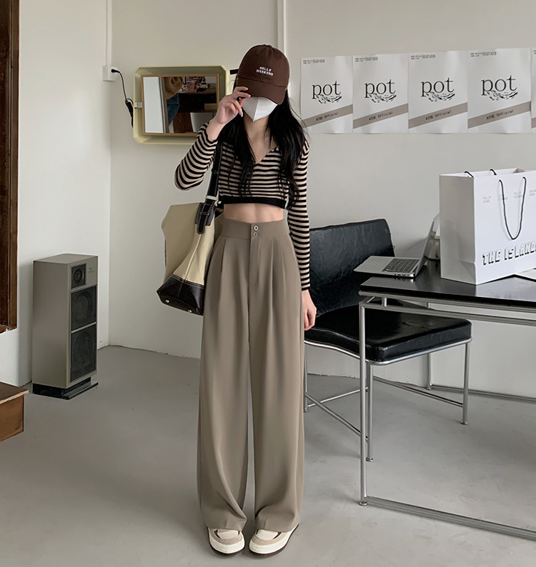 鬆緊高腰闊腿寬鬆顯瘦垂感休閒西裝褲