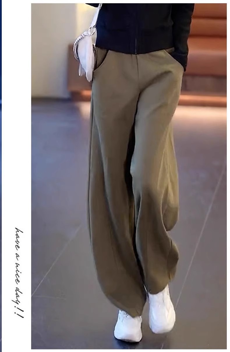 百搭運動風刷毛闊腿休閒直筒褲