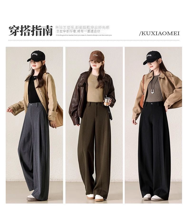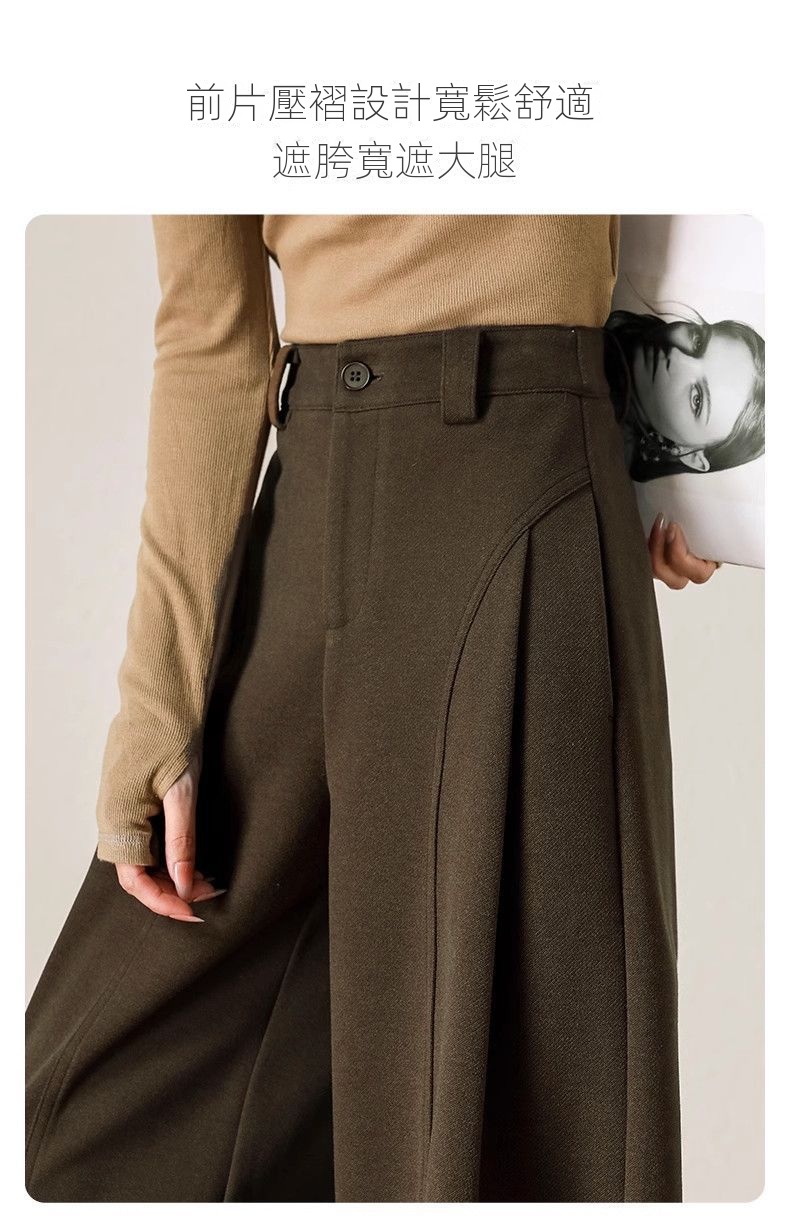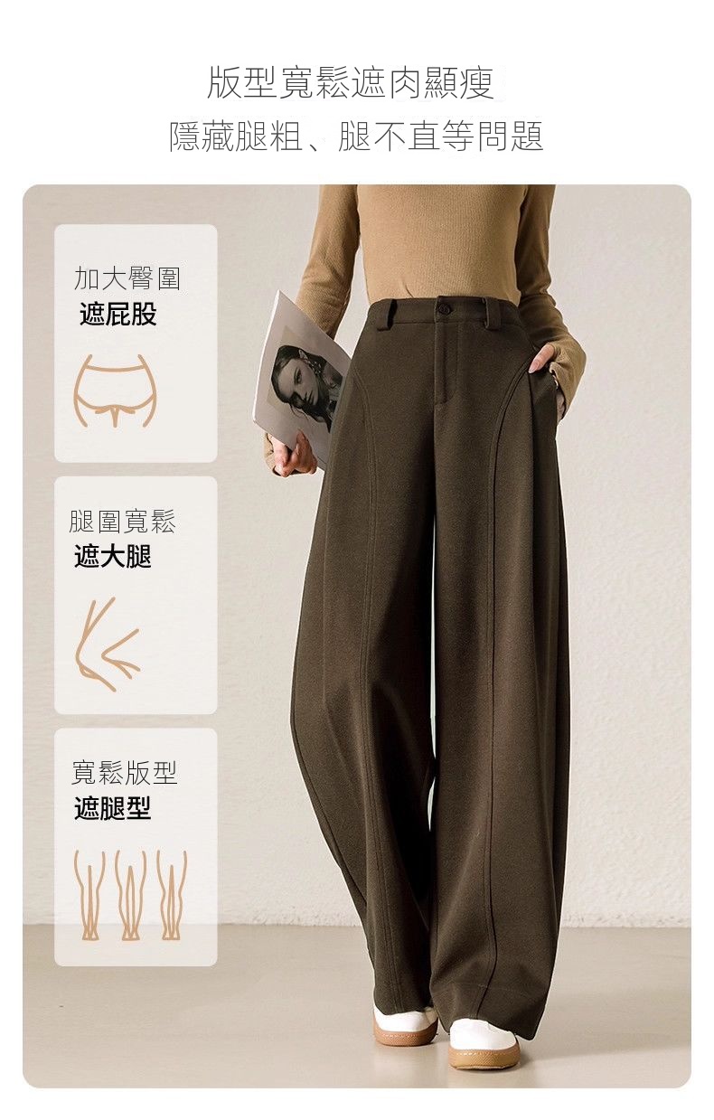 糯感寬鬆加厚款呢子直筒顯瘦休閒闊腿褲