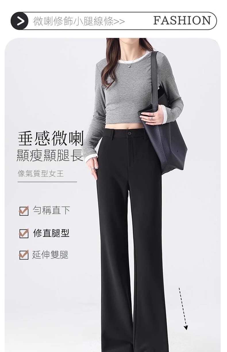高腰顯瘦垂感彈力休閒黑色西裝喇叭褲