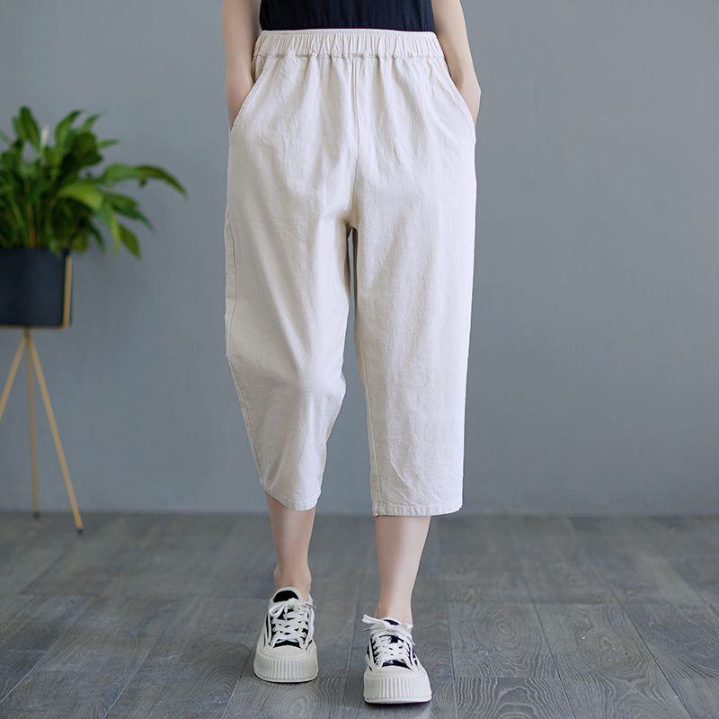 涼感休閒薄款高腰棉麻顯瘦七分哈倫褲