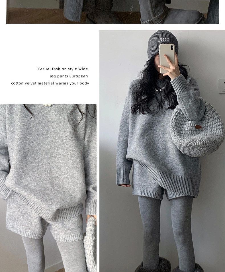 【整套】設計感減齡小香風針織毛衣+高腰直筒褲兩件套