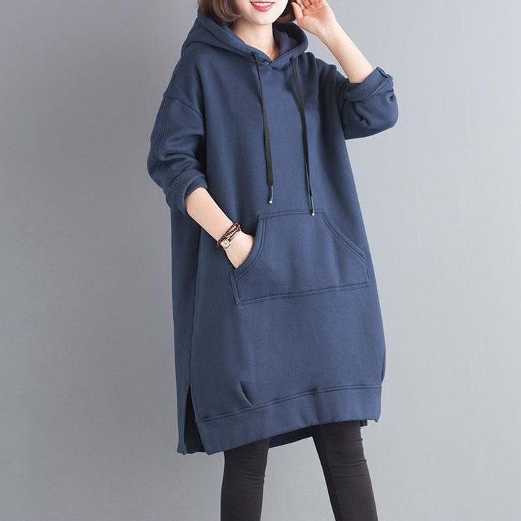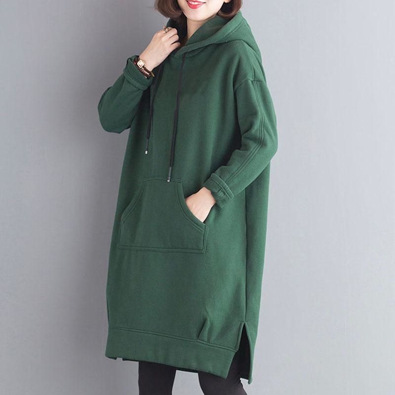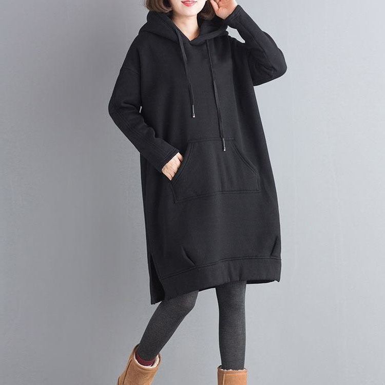 寬鬆刷毛加厚素色開叉中長款連帽T