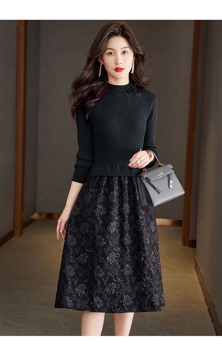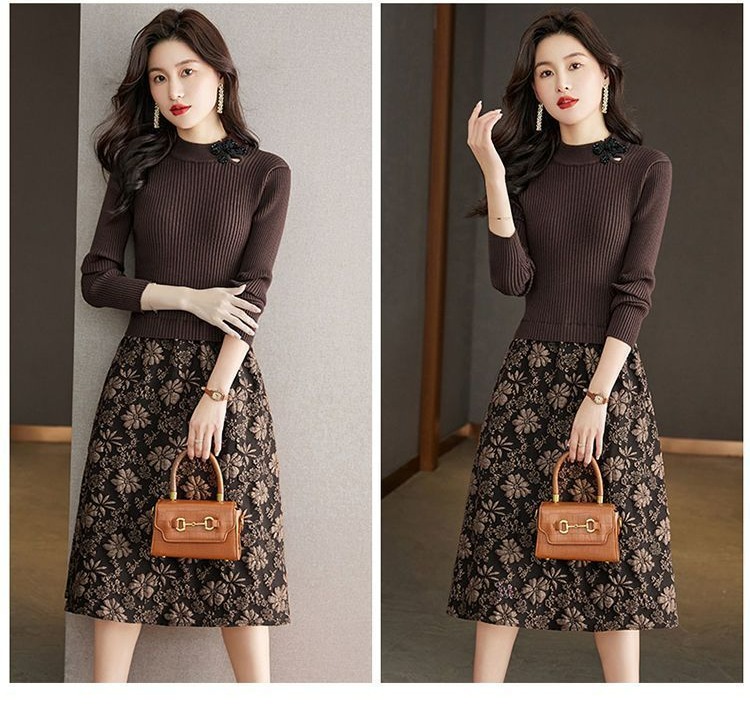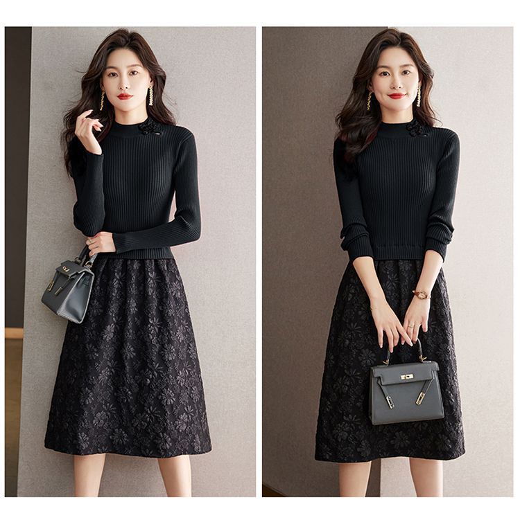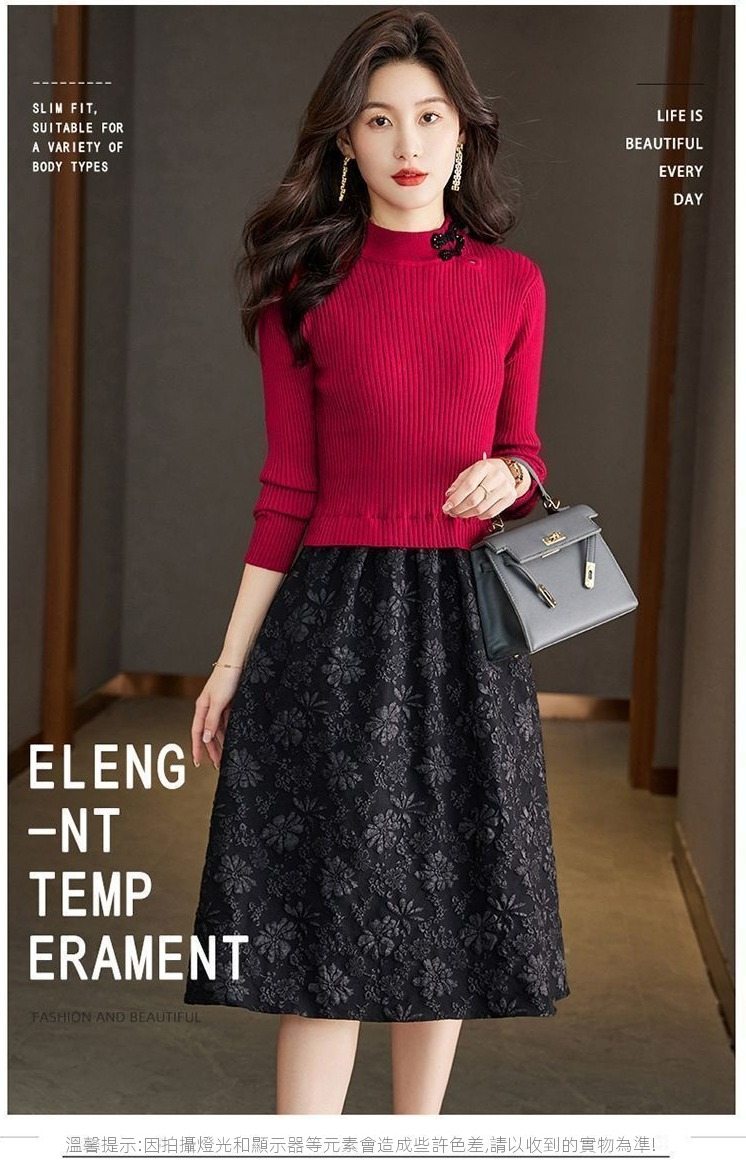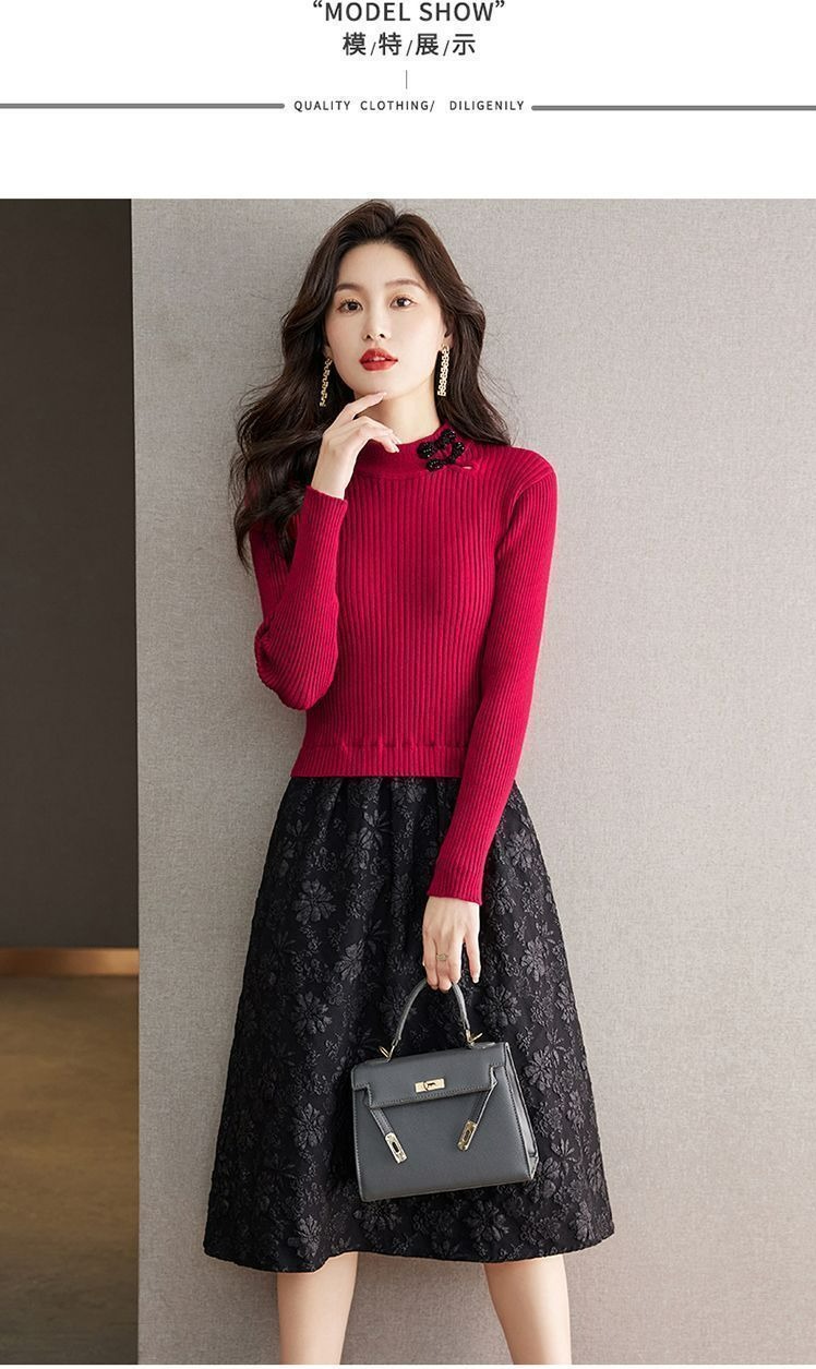 【單件/套裝】法式高領針織衫+高腰半身長裙兩件套
