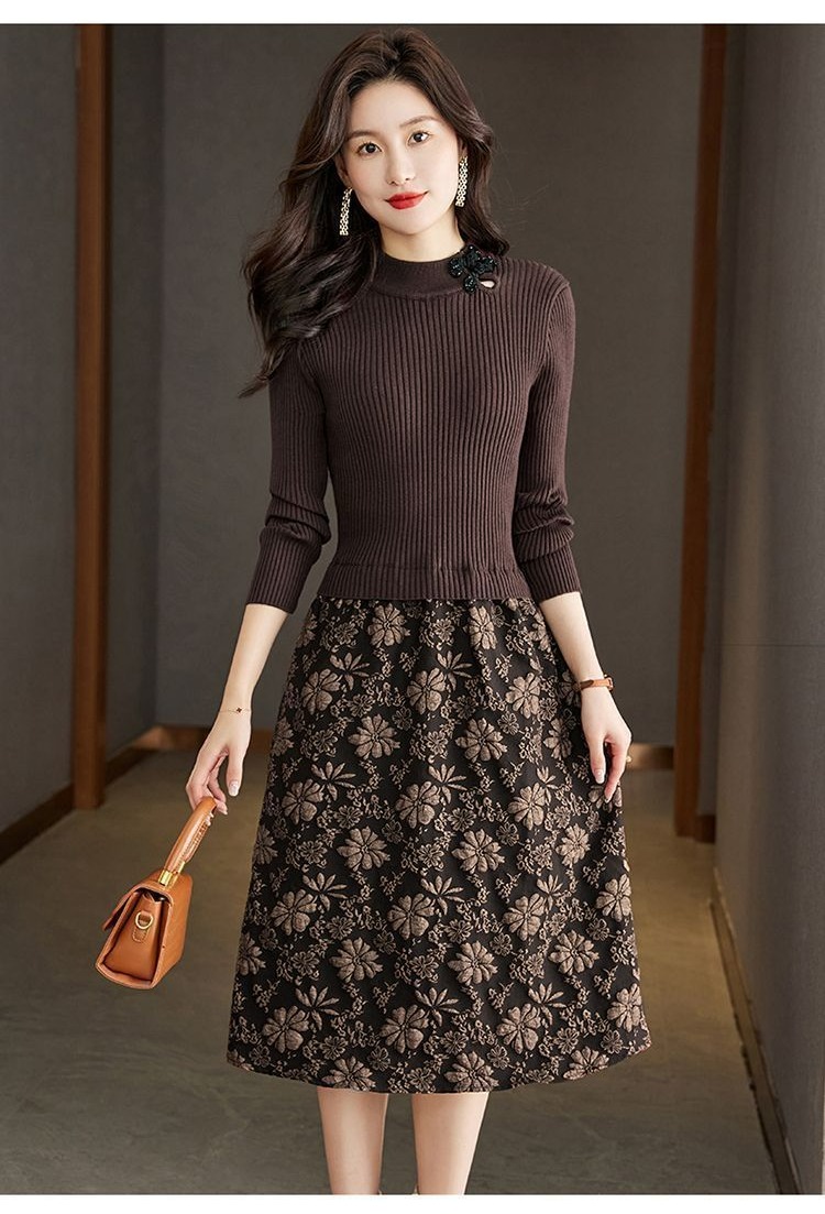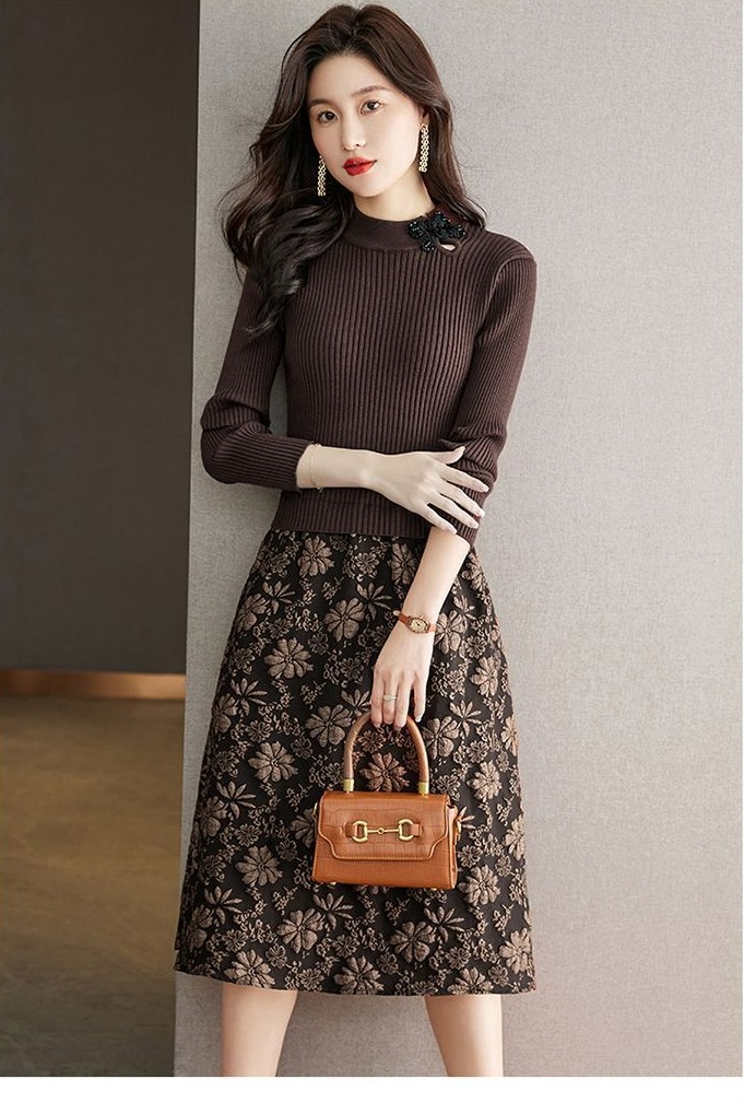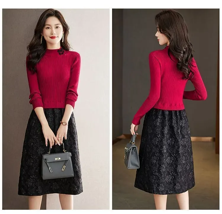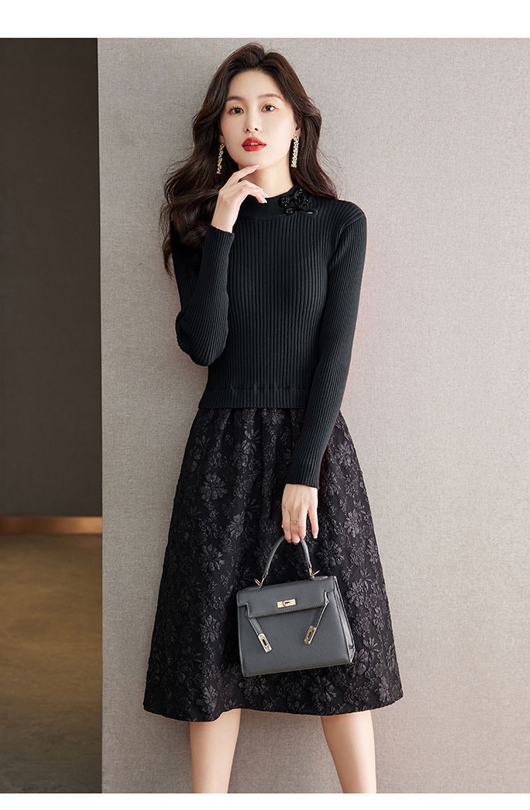 【單件/套裝】法式高領針織衫+高腰半身長裙兩件套