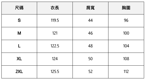 此處給出的參考尺寸表只是一個標準指南