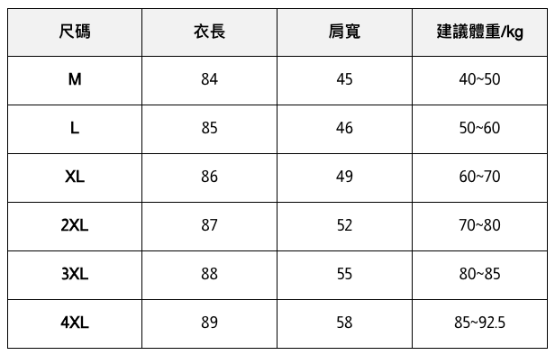 此處給出的參考尺寸表只是一個標準指南