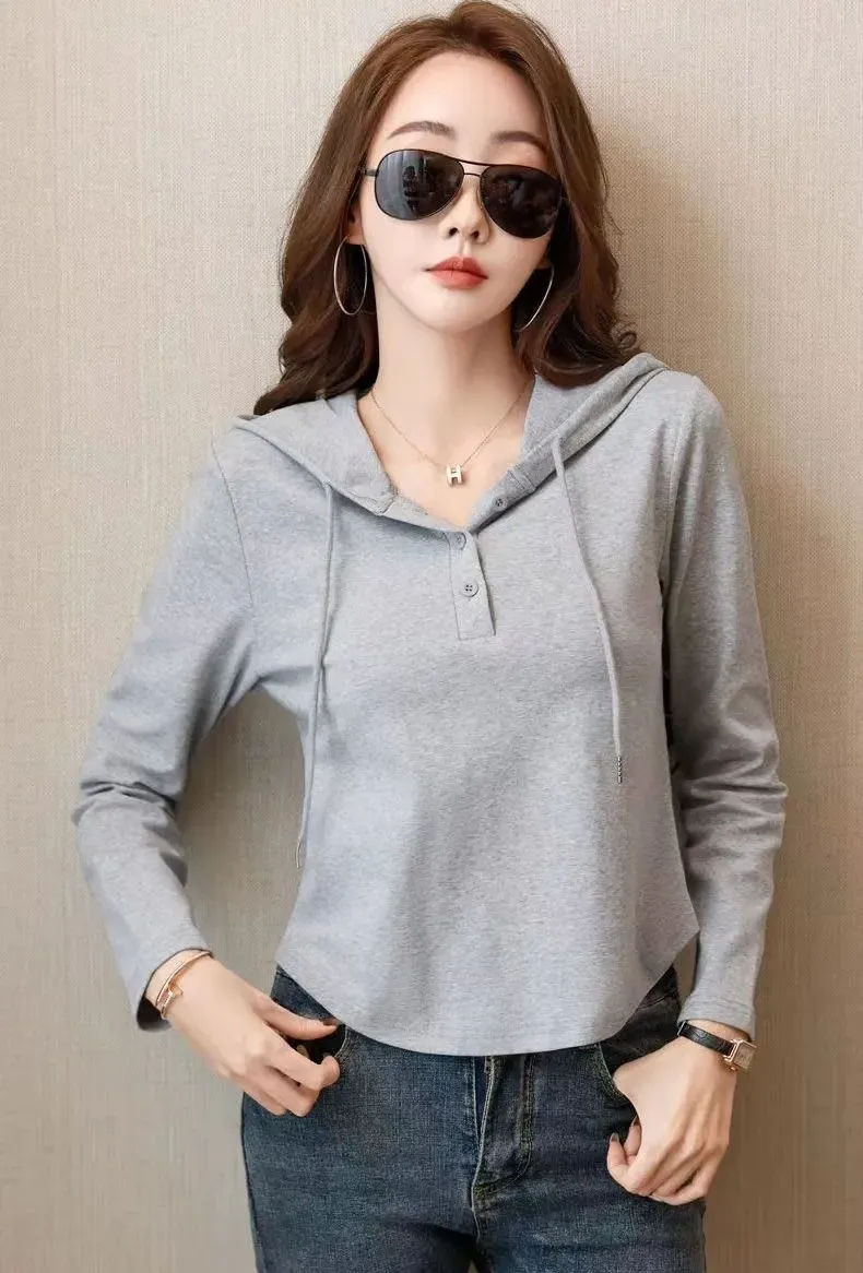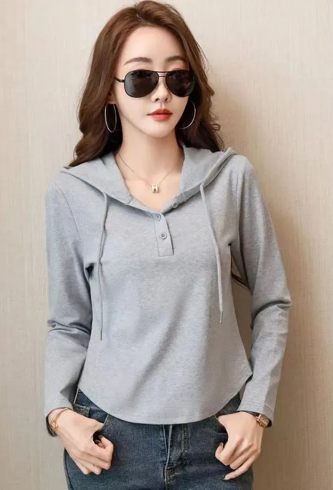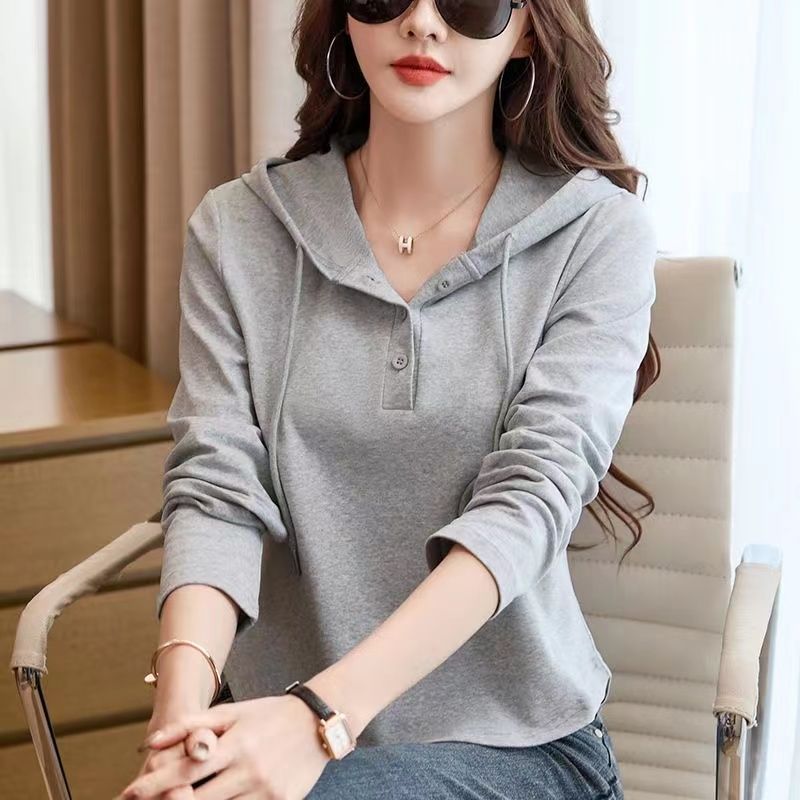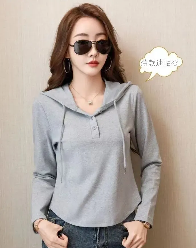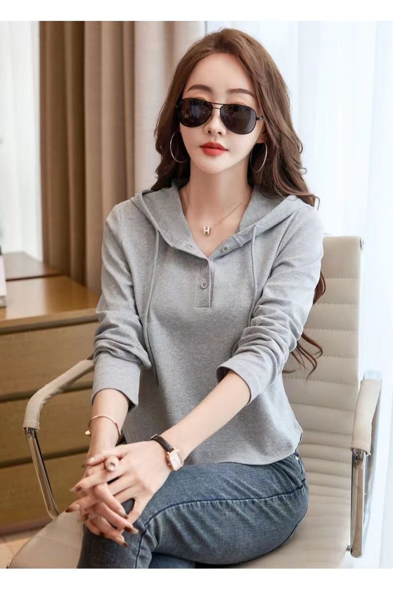 設計感素色寬鬆慵懶抽繩連帽針織衫