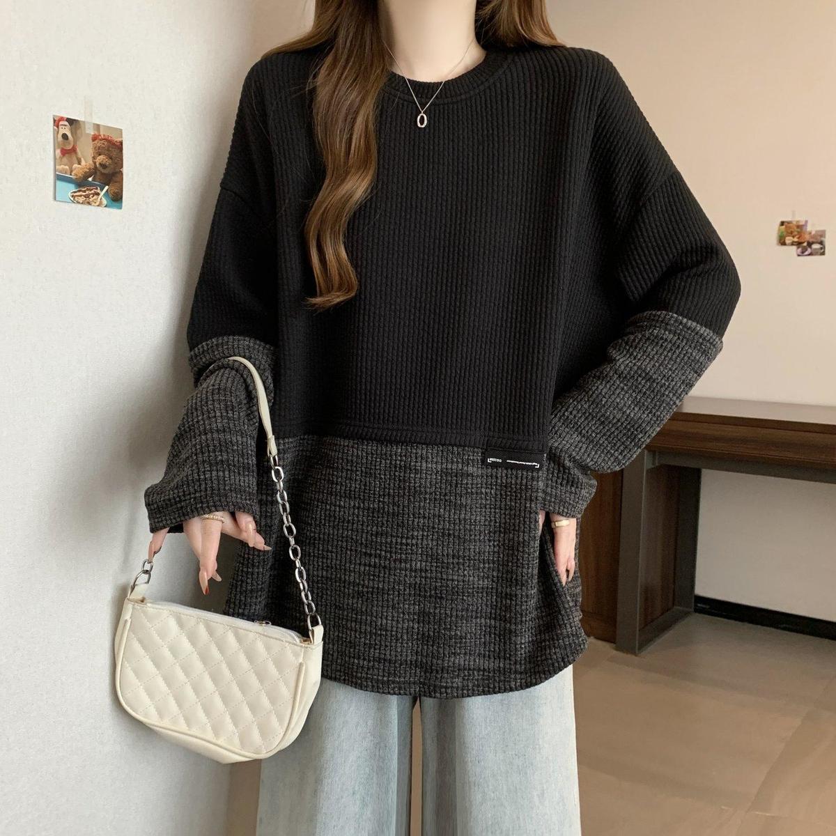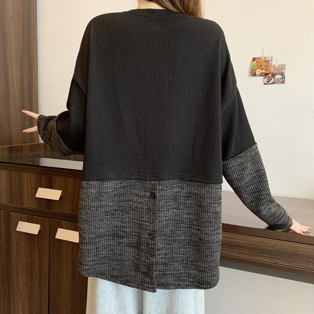 2色設計感拼接寬鬆慵懶撞色長袖T恤