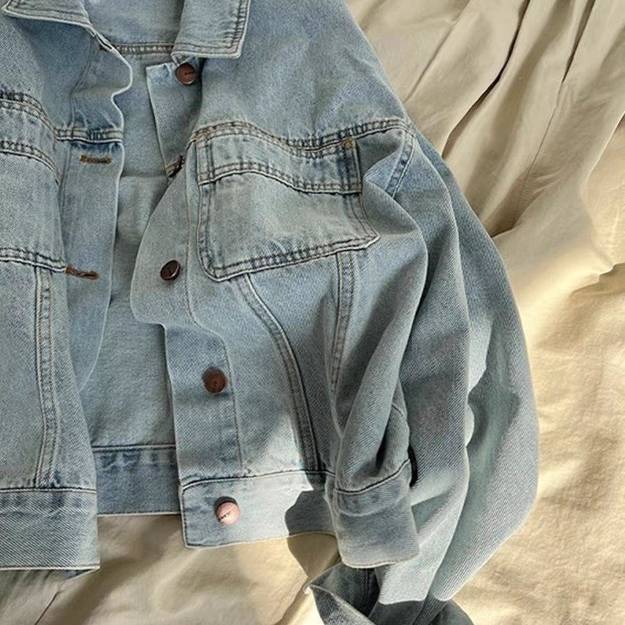 百搭寬鬆夾克長袖高級感復古藍牛仔外套