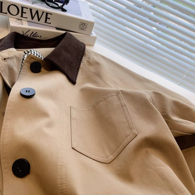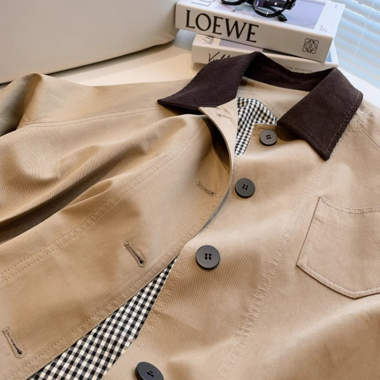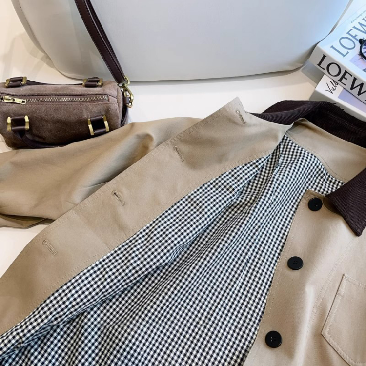 休閑高級感撞色中長款風衣寬鬆外套-HaloBless
