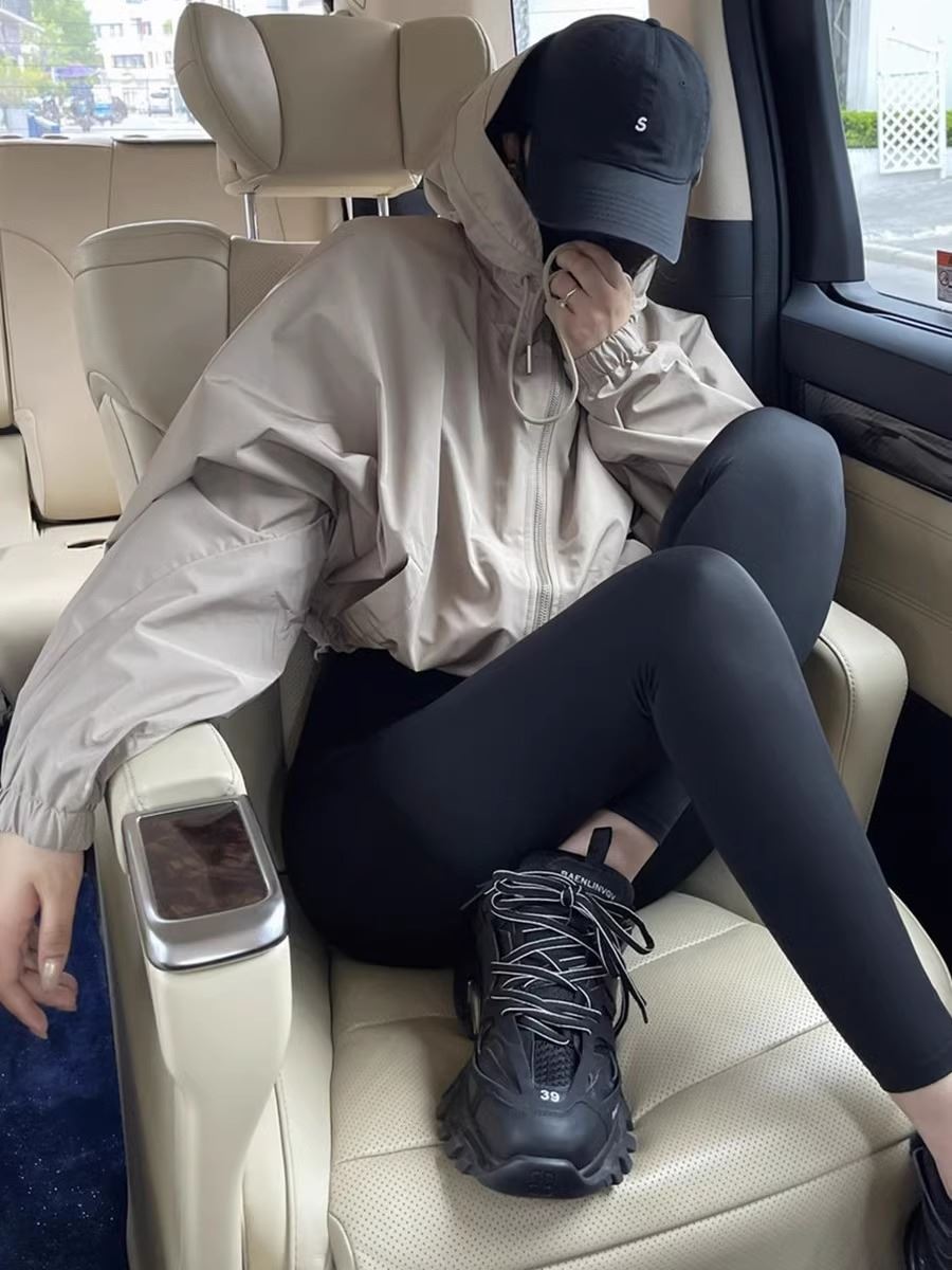 【整套】刷毛時尚長袖連帽外套+休閒束脚褲兩件套裝