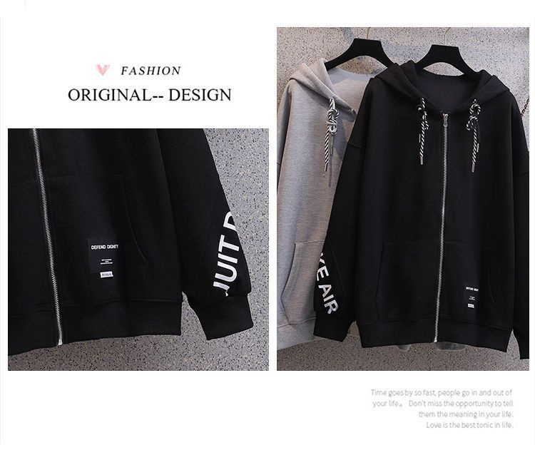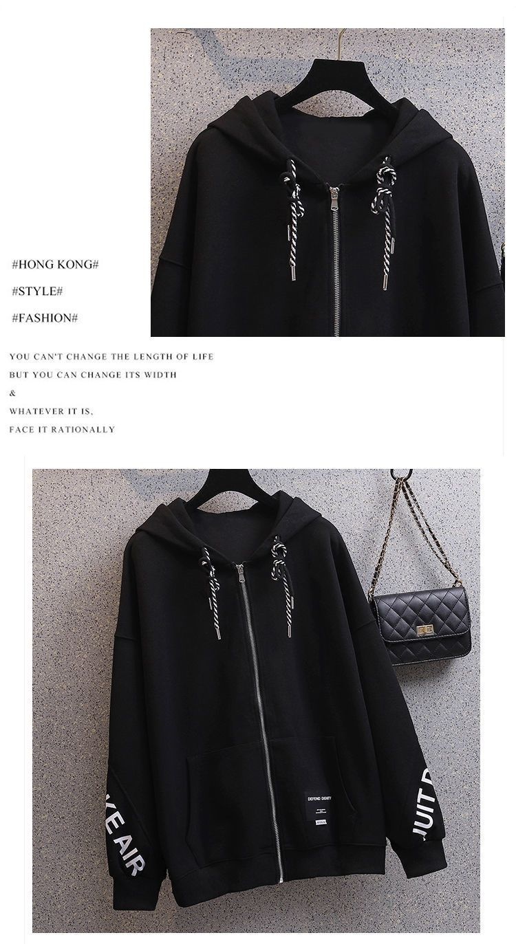 【整套】刷毛時尚長袖連帽外套+休閒束脚褲兩件套裝