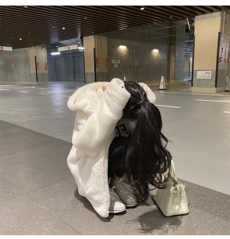 寬鬆慵懶連帽刷毛仿皮草加厚羊羔毛絨外套