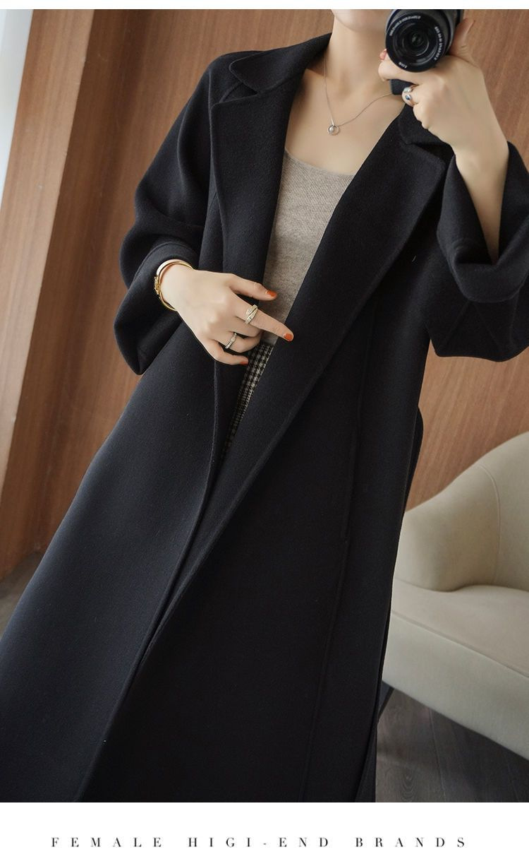 雙面毛呢大衣長版過膝寬鬆大碼毛呢外套