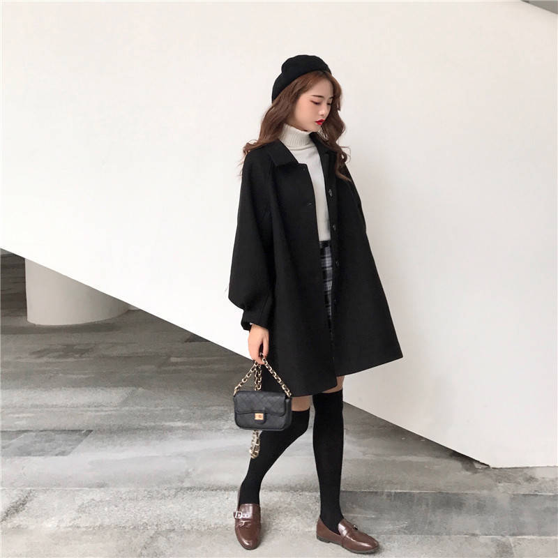 韓系卷边簡約慵懒风宽松顯瘦針織衫