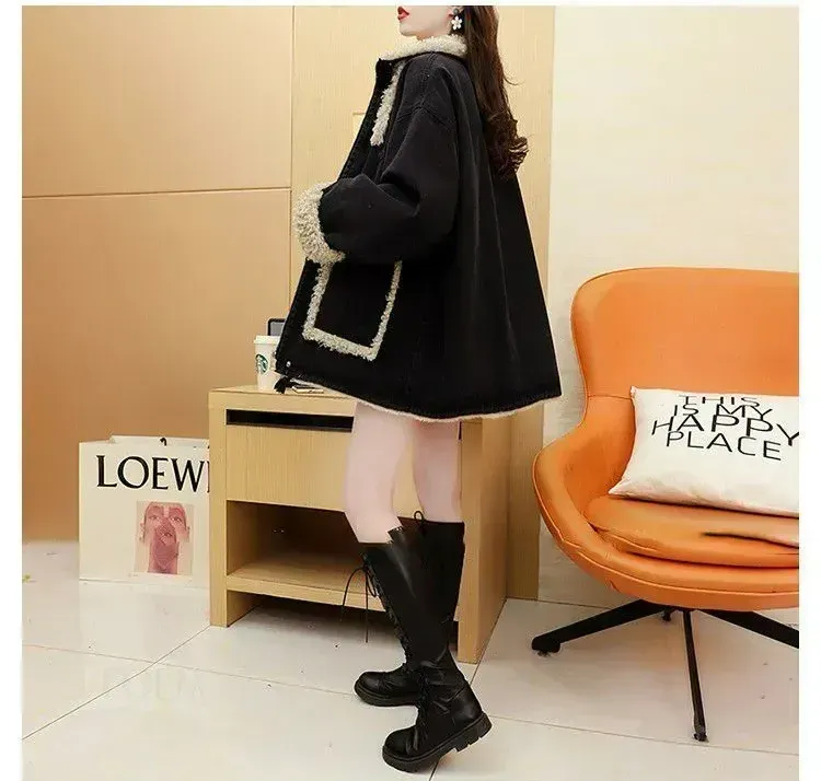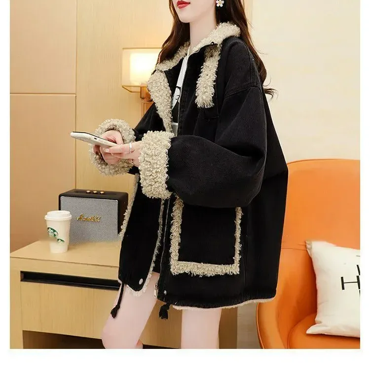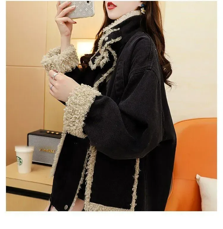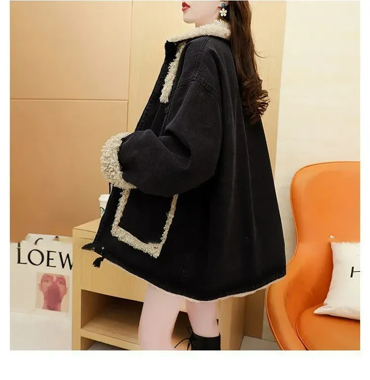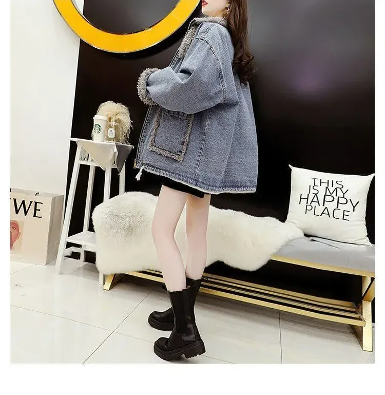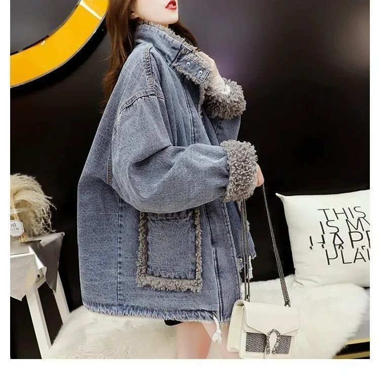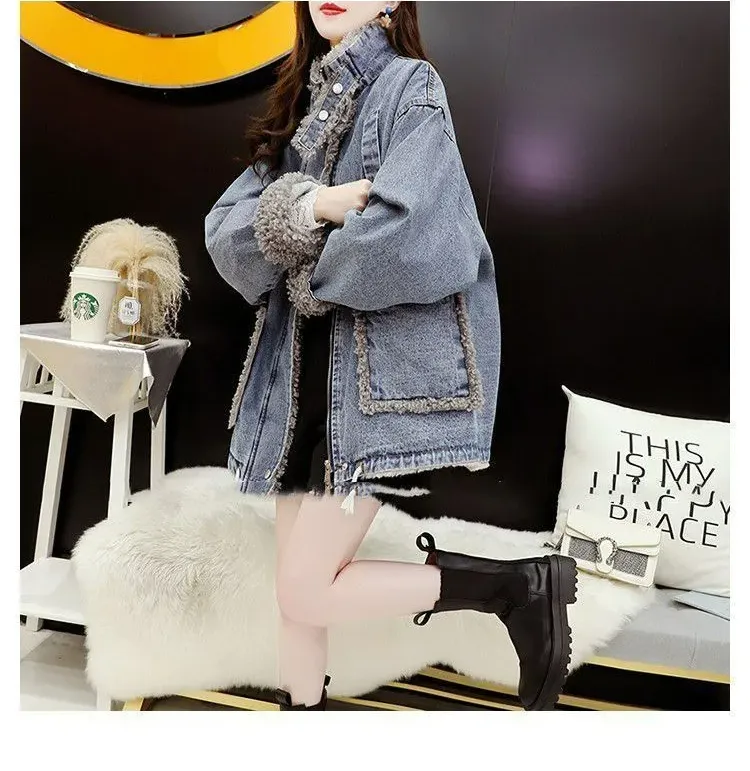 休閒寬鬆刷毛加厚棉衣洋氣百搭牛仔外套