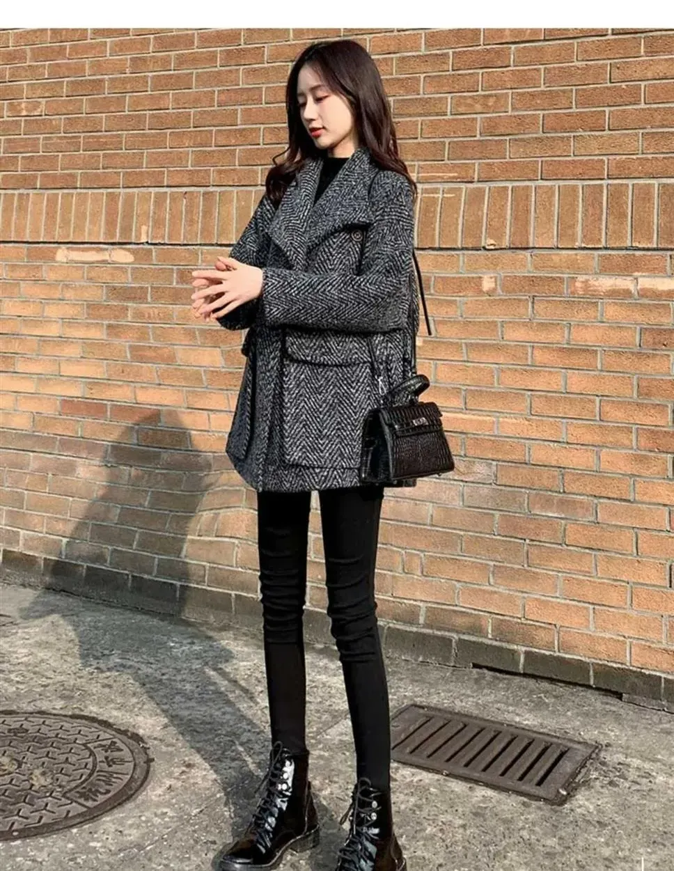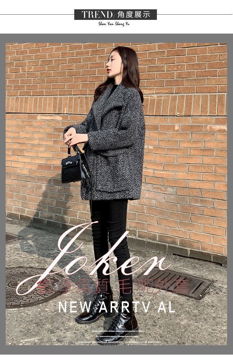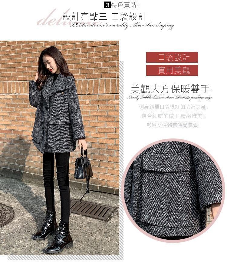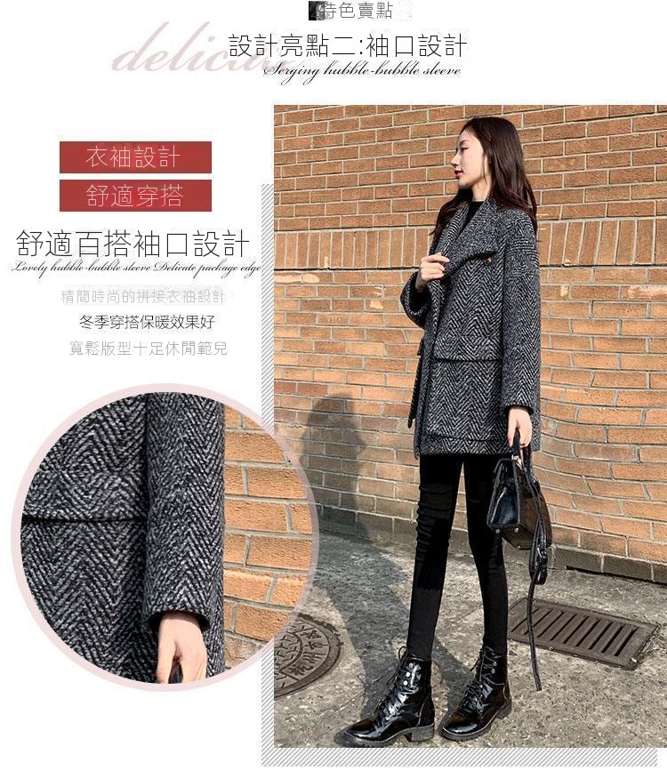 寬鬆百搭中長版呢子大衣加厚毛呢格子外套