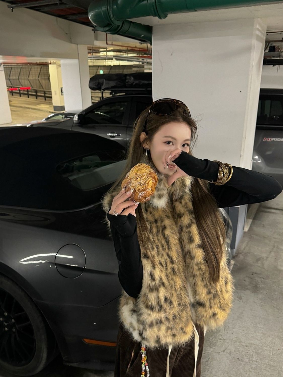 雙面穿時髦俏皮漸變雪豹皮草馬甲外套