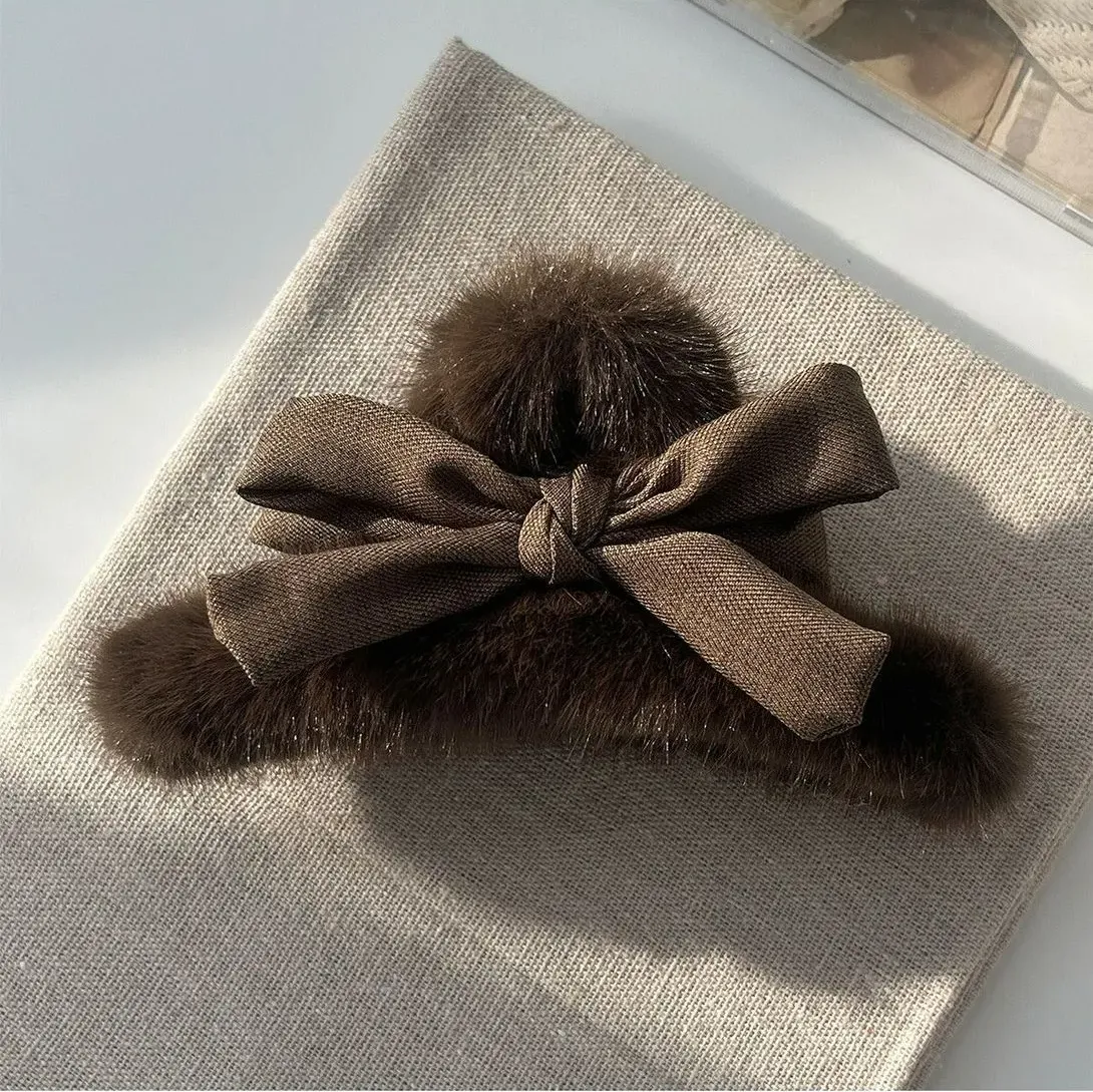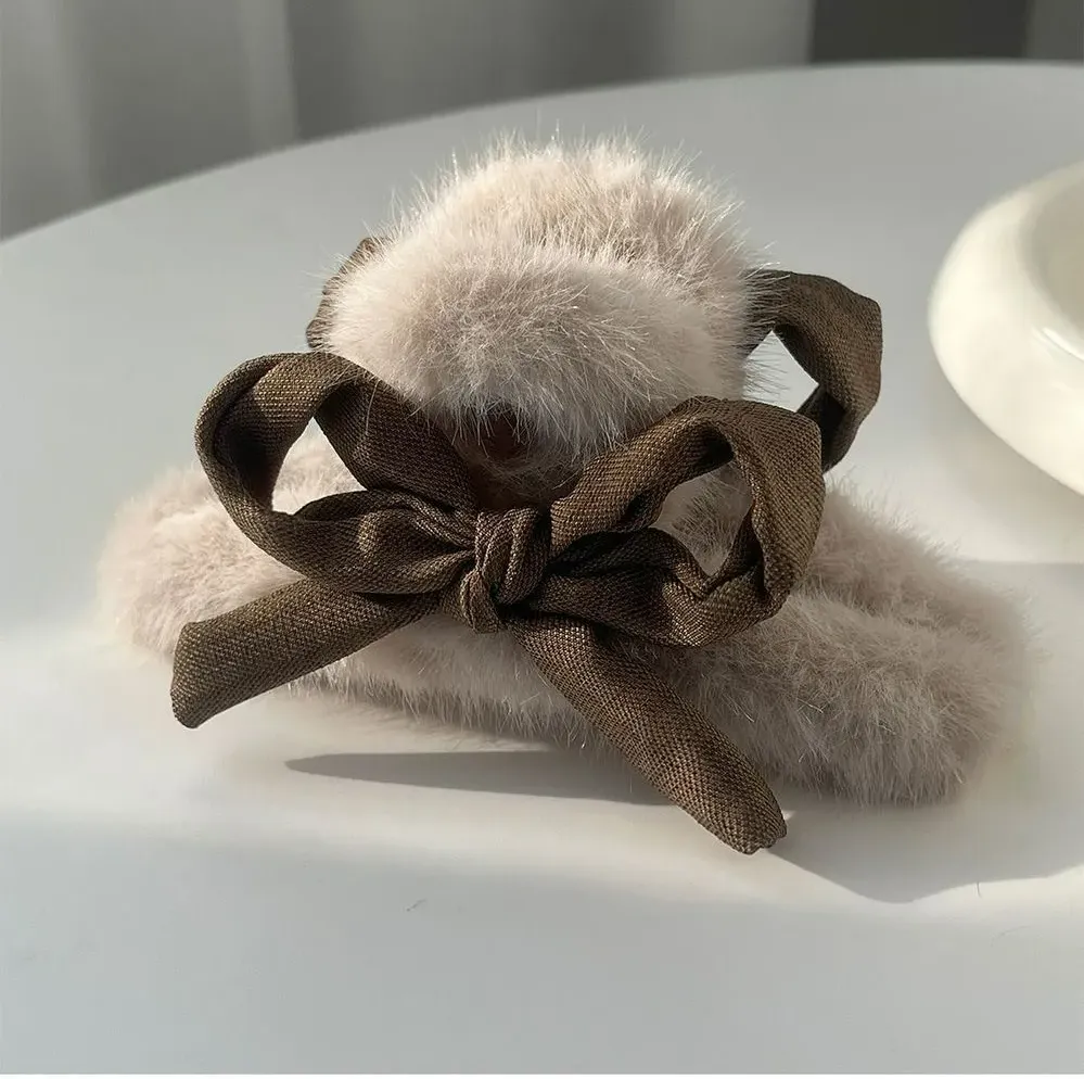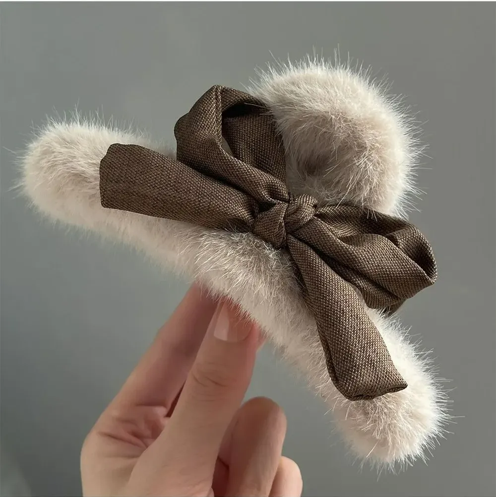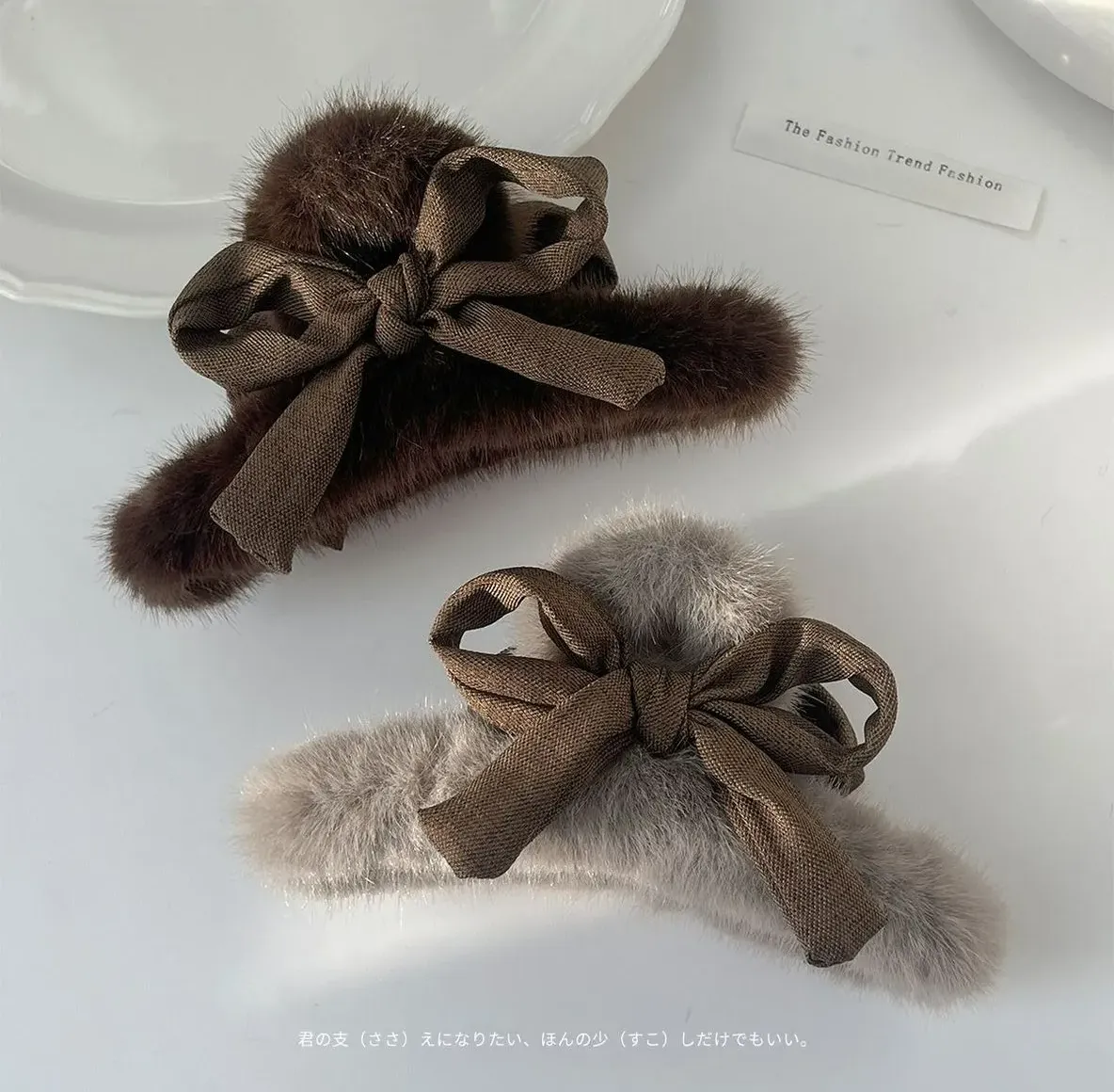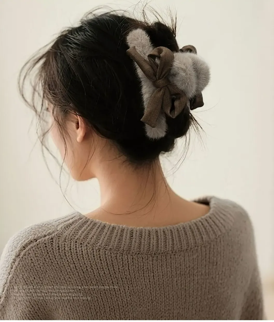 蝴蝶結毛絨髮夾大號鯊魚夾後腦勺盤髮抓夾