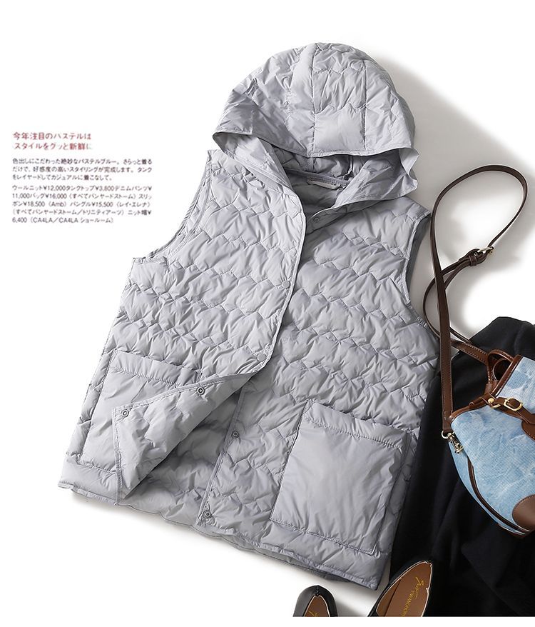 日系輕薄羽絨棉連帽馬甲休閒保暖背心外套