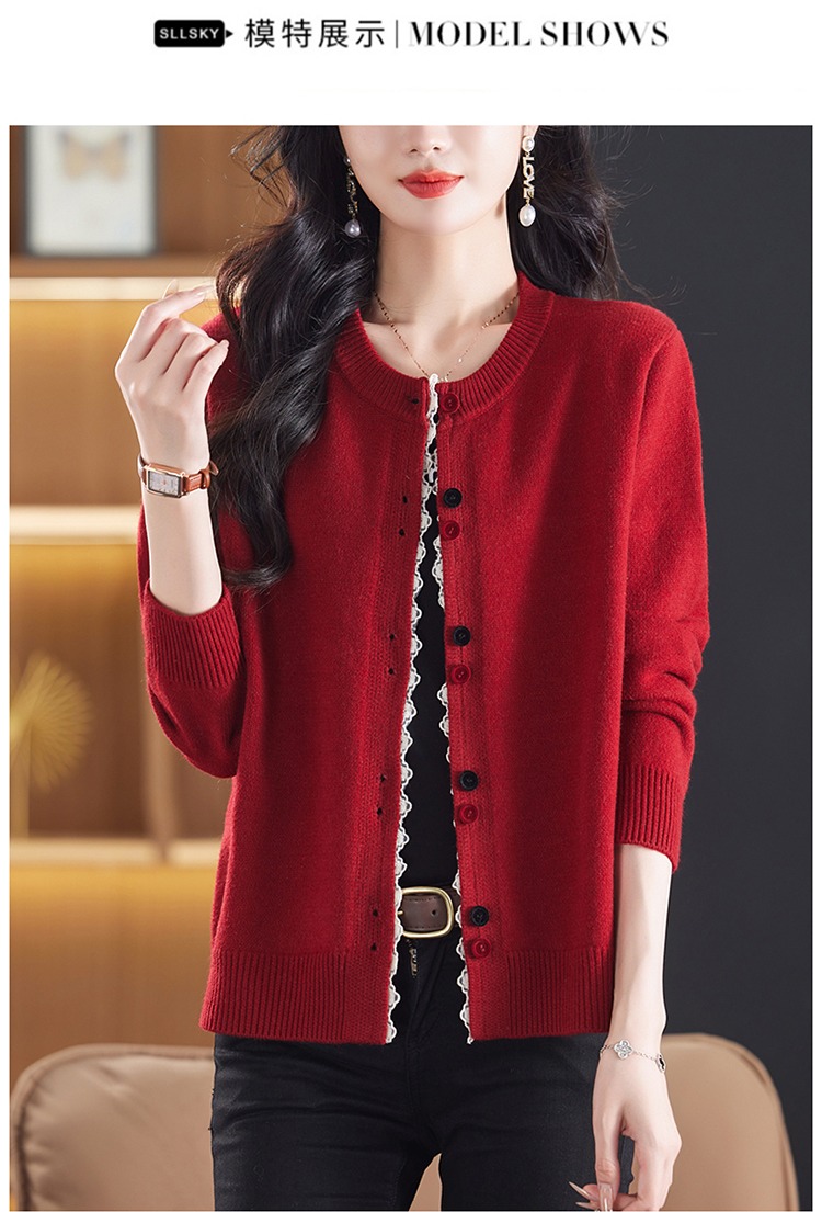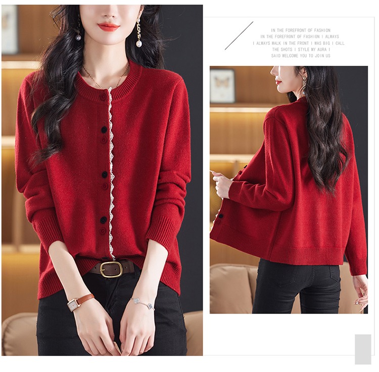 氣質百搭休閒寬松洋氣圓領針織開衫