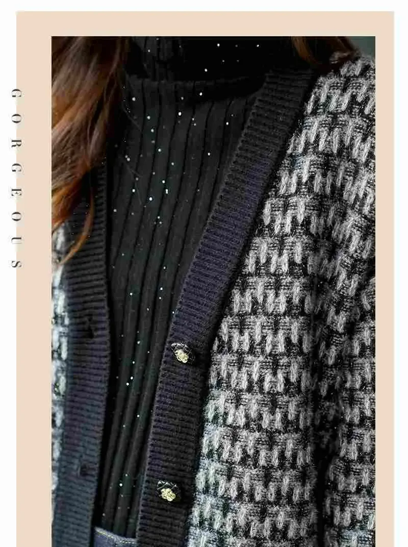 韓版大碼V領毛衣厚高檔小香風針織開衫