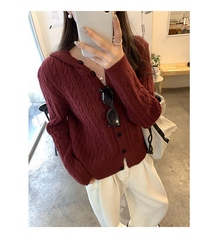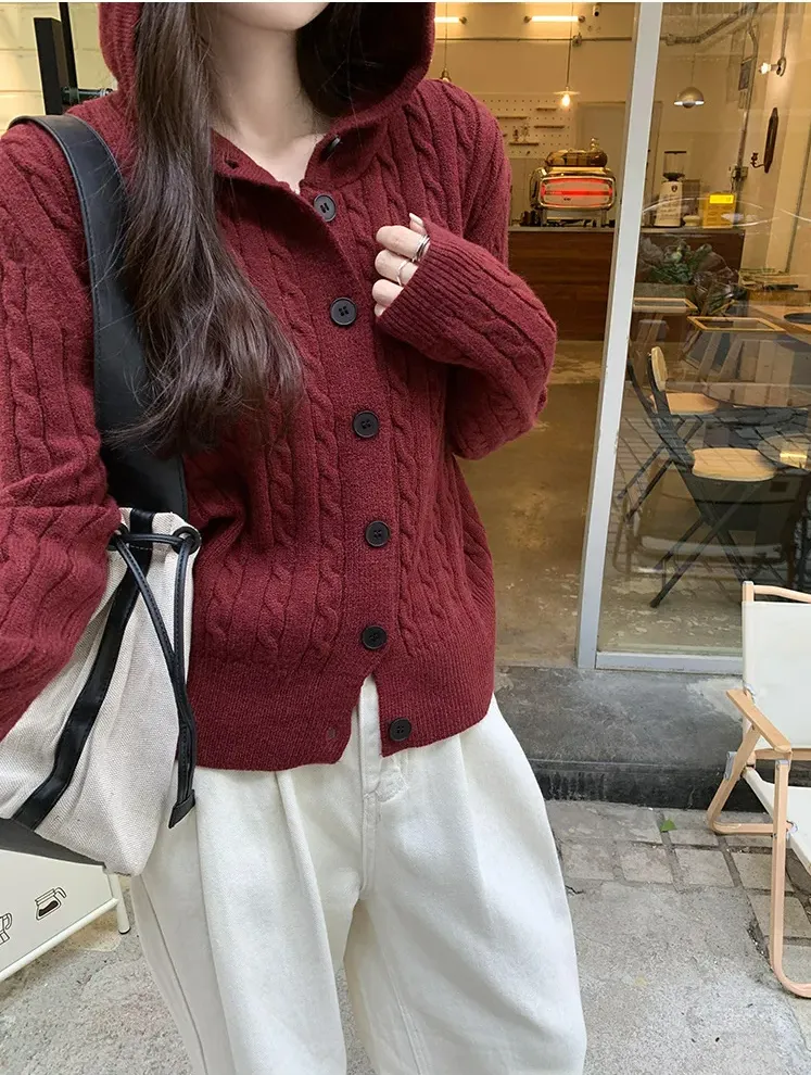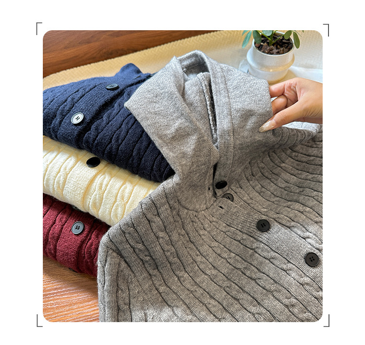 設計感顯瘦氣質百搭連帽長袖針織開衫