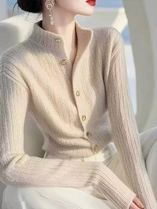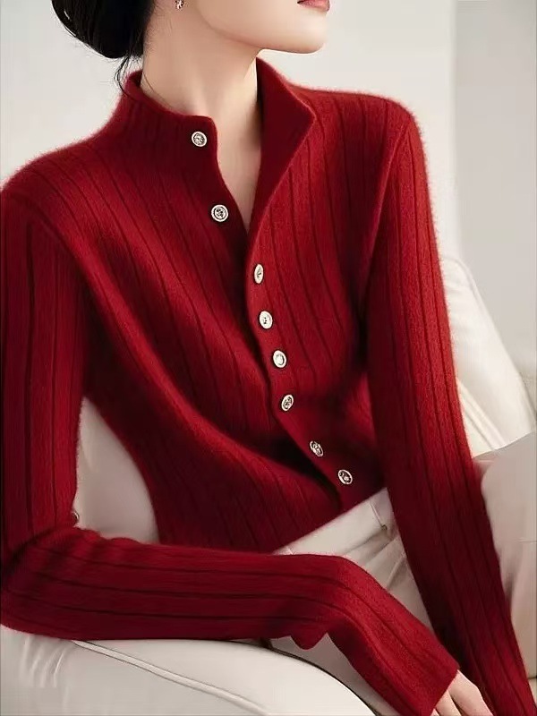 高級感簡約氣質素色半高領針織衫