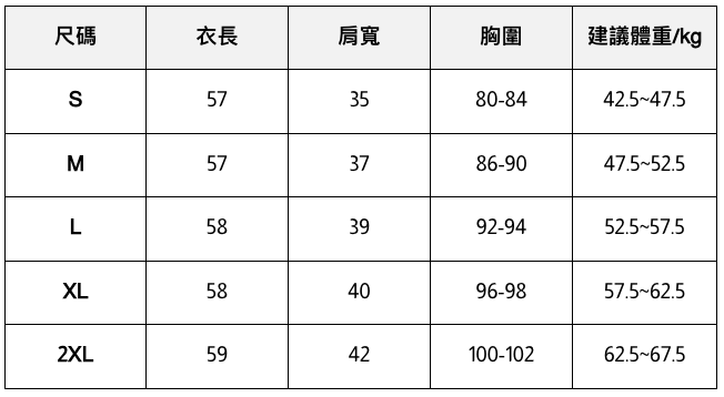 此處給出的參考尺寸表只是一個標準指南