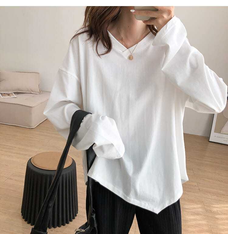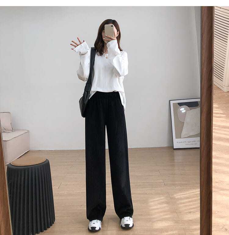 【單件/套裝】美式慵懶寬鬆圓領長袖T恤+休閑闊腿褲兩件套