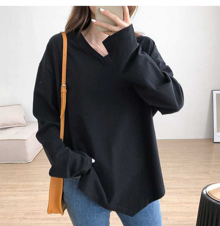 韓系卷边簡約慵懒风宽松顯瘦針織衫