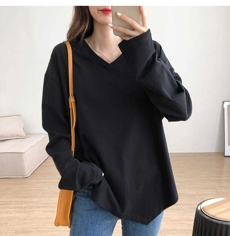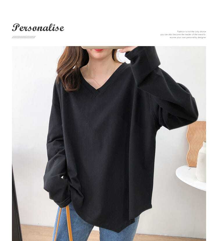 韓版寬鬆顯瘦套頭撞色v領針織衫
