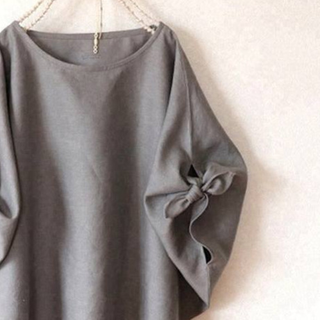 【5色可選】原創日系圓領寬鬆兩袖綁帶五分短袖